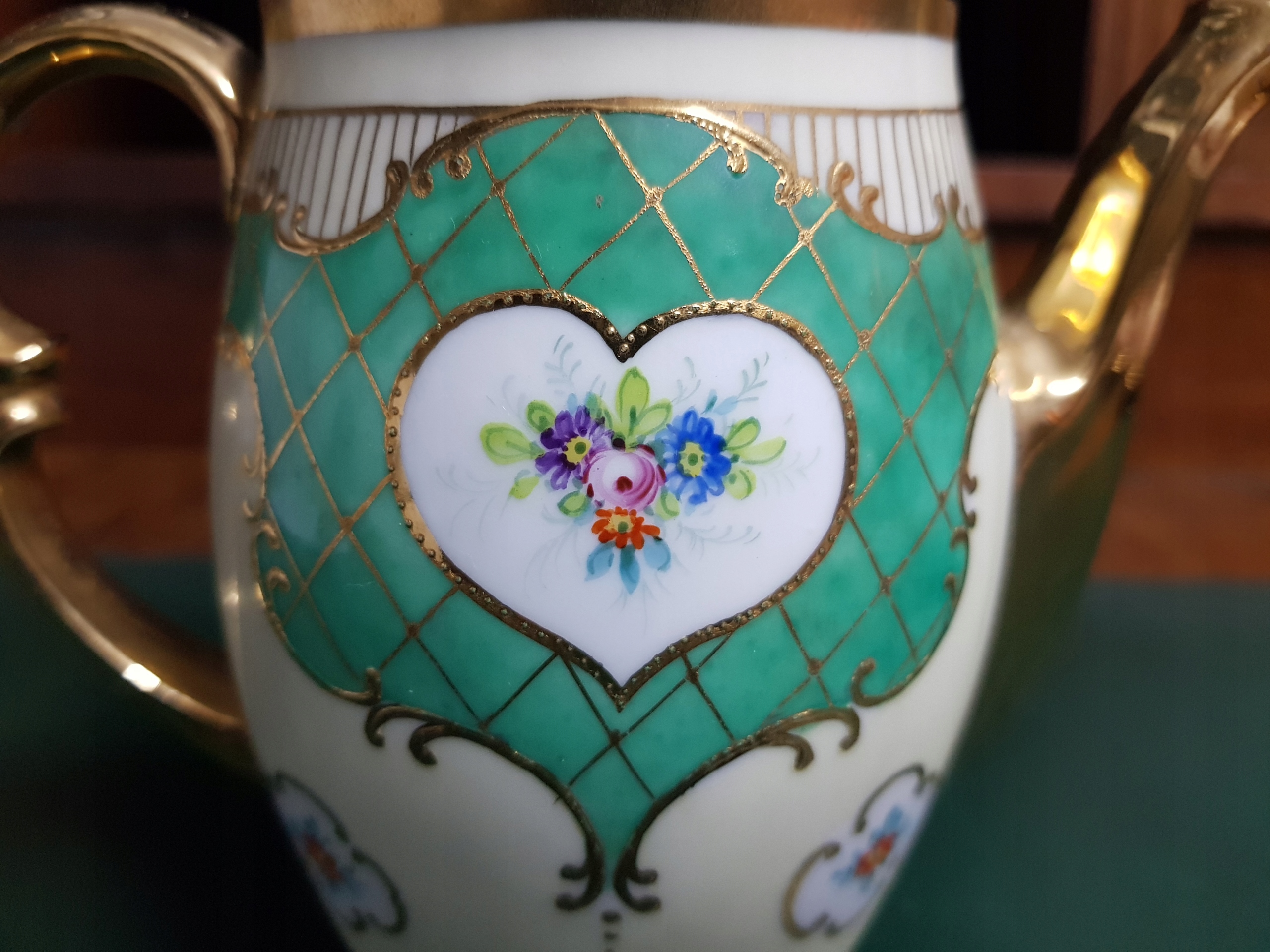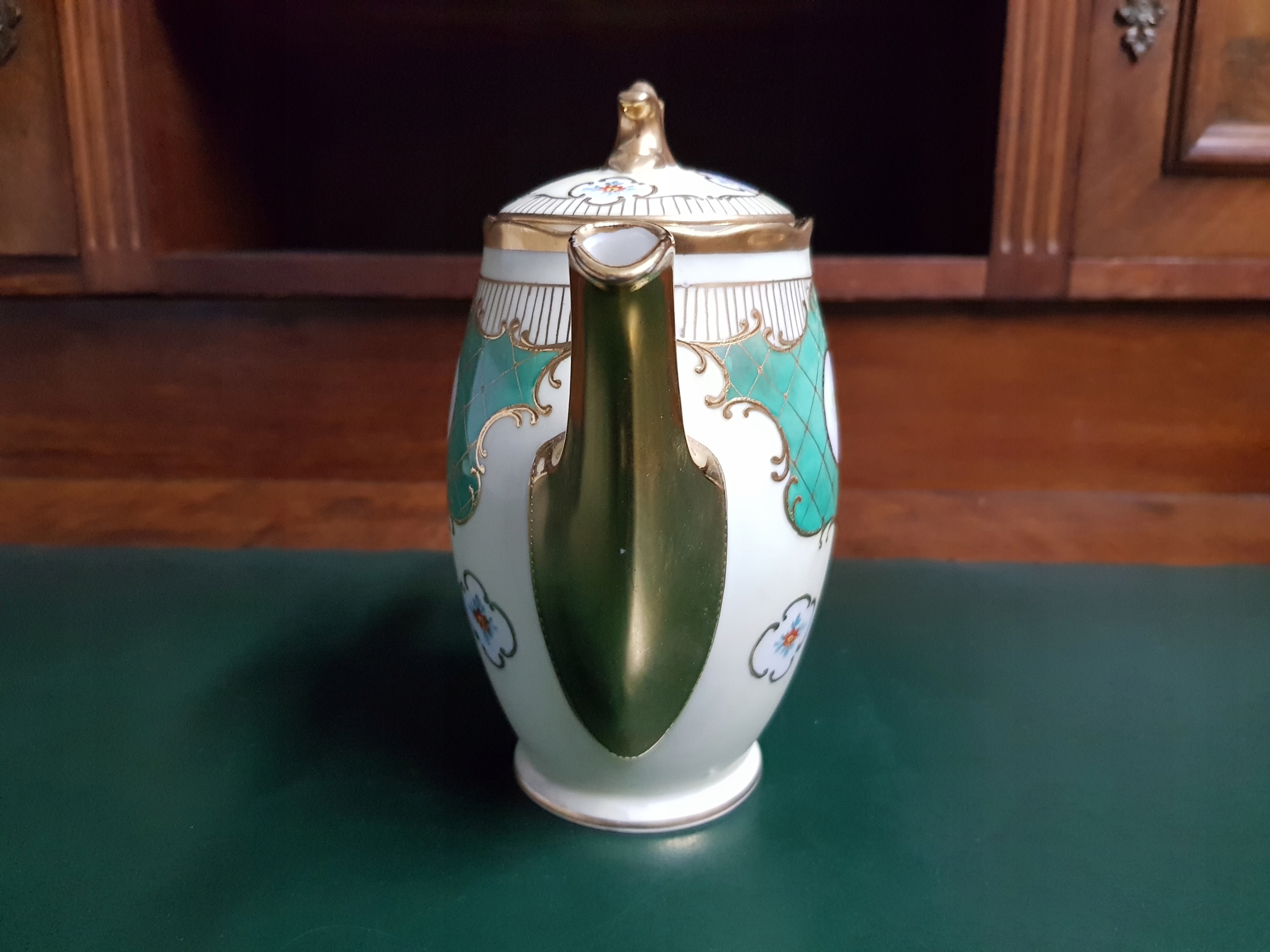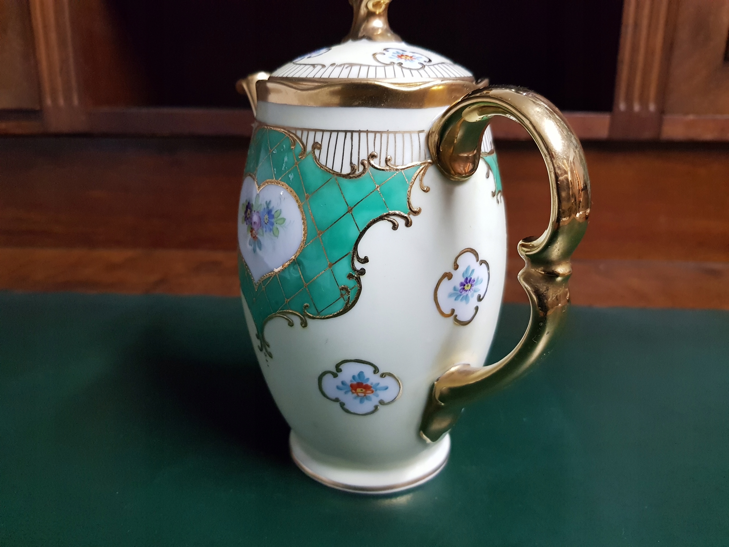 Предмет аукциона — кувшин мокко с позолоченной ручкой и носиком. Интересная композиция из позолоты и нежной позолоты.