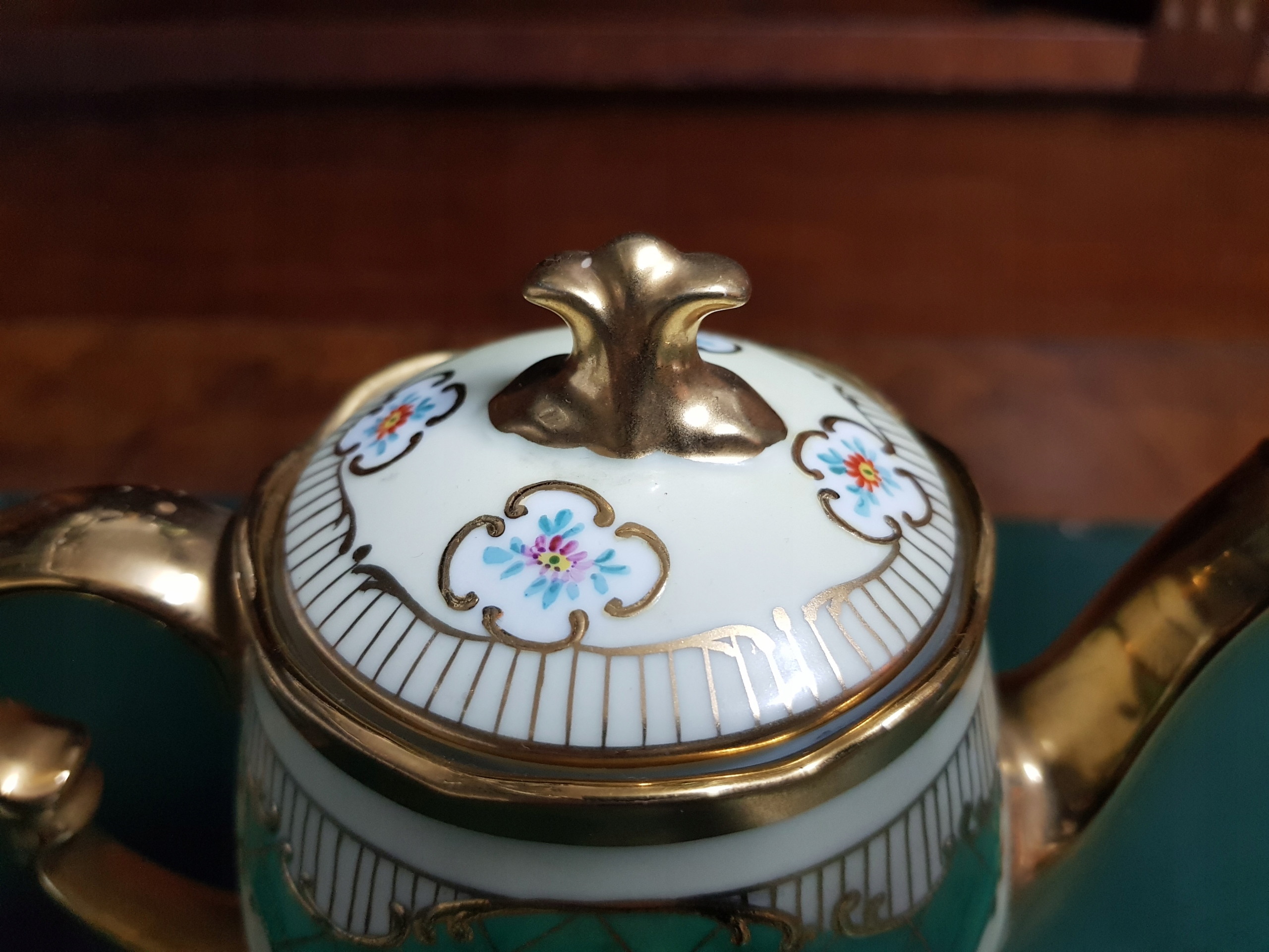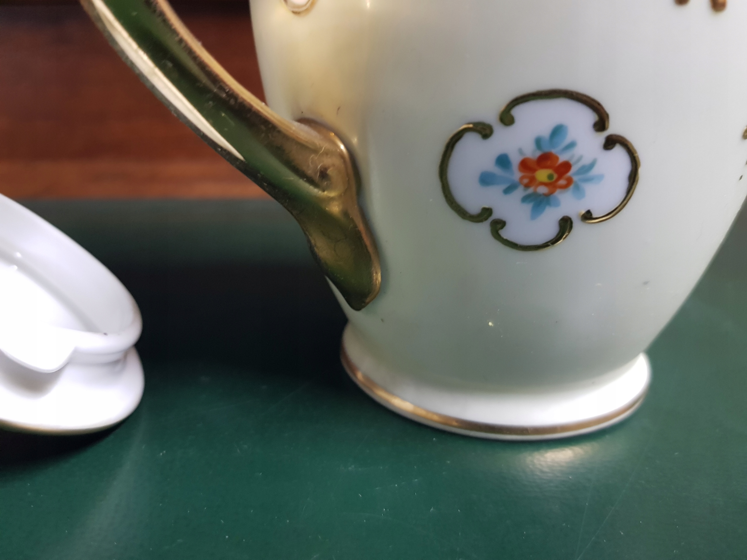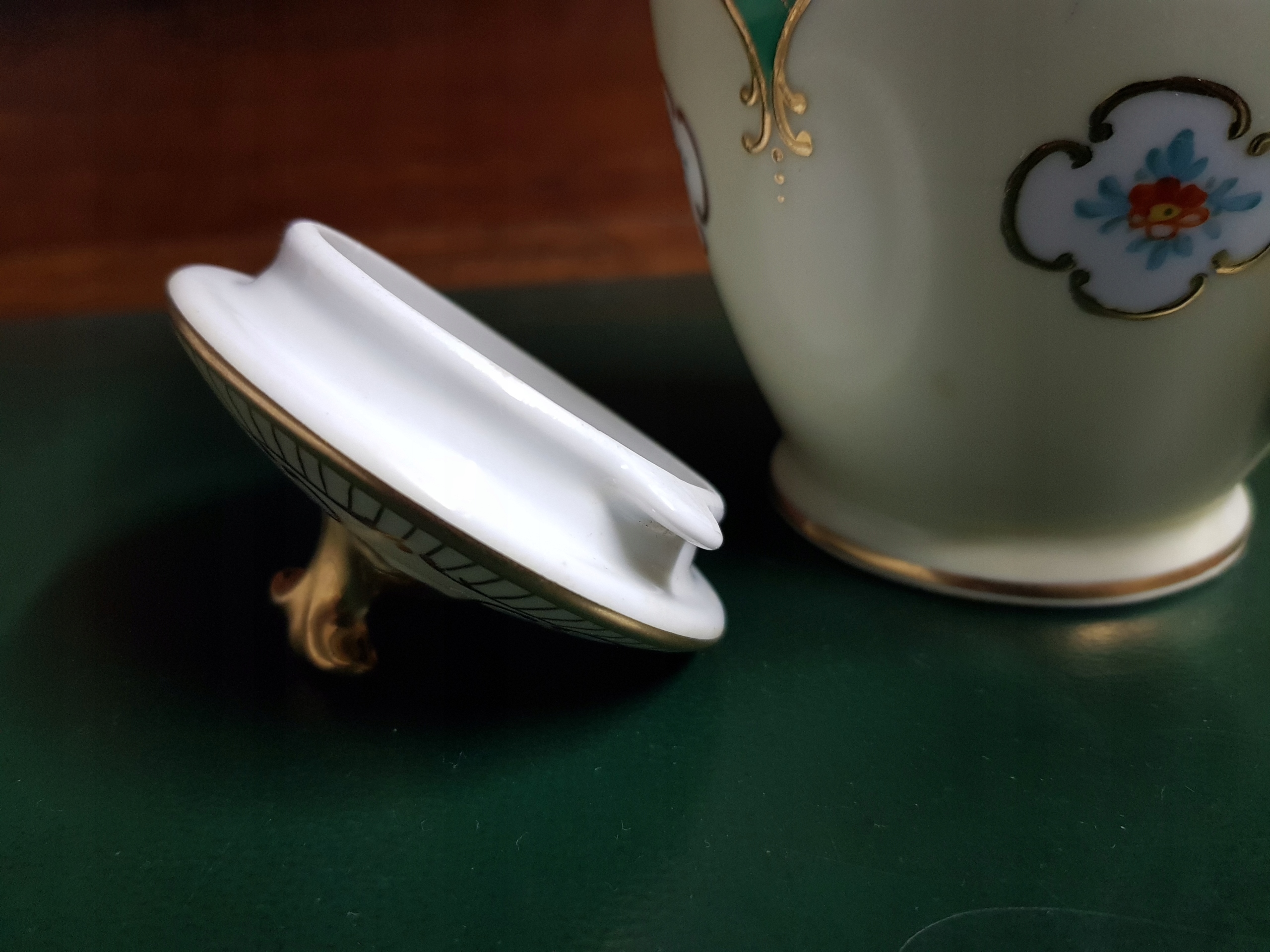 Предмет аукциона — кувшин мокко с позолоченной ручкой и носиком. Интересная композиция из позолоты и нежной позолоты.