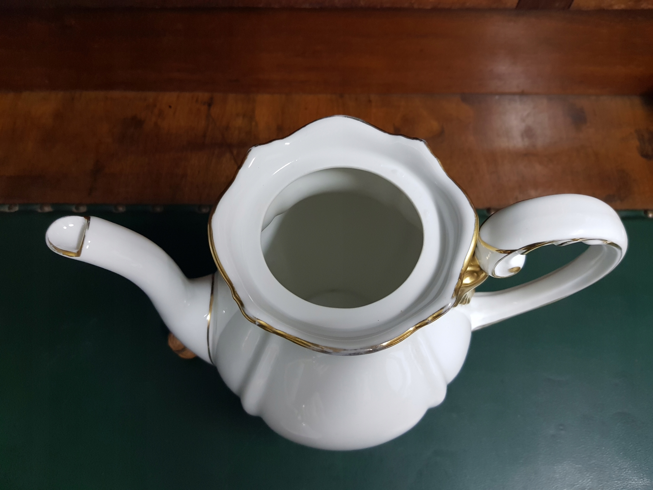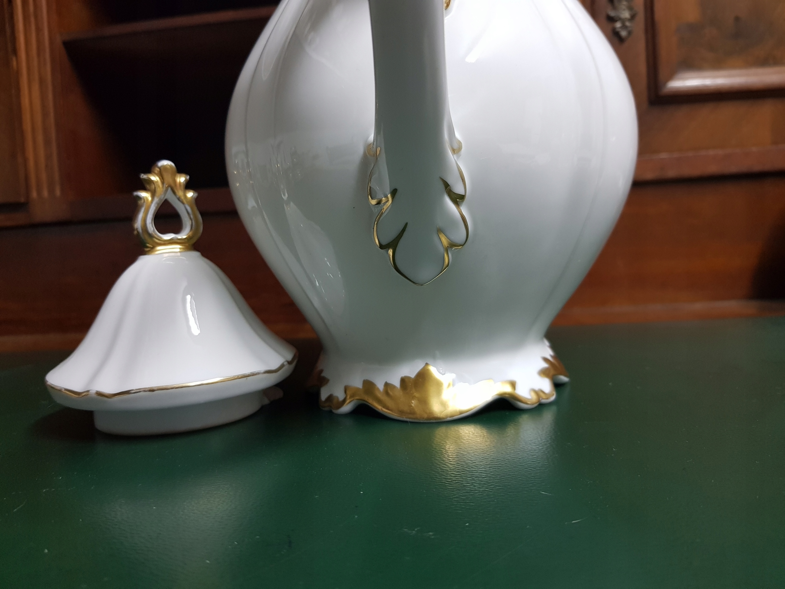 Предмет аукциона - кофейный кувшин Sorau Princess.Белый фарфор.Потертости позолоты.(фото).Утрата внутренней части крышки.
