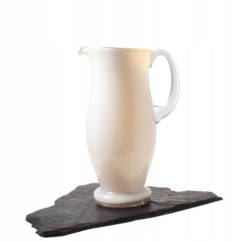 Кувшин для молока изготовлен из многослойного натриевого стекла ручной формовки. Оно происходит от Художественного стекольного завода «Сташиц» в Домбровой Гурниче, который является филиалом Домашнего стекольного завода «Зомбковице» в Домбровой Гурниче. 1970-е/1980-е годы