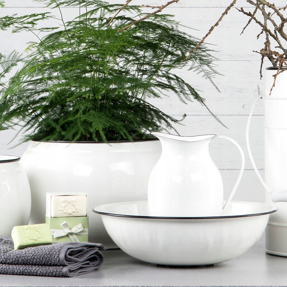 Белая эмалированная лейка в форме кувшина: