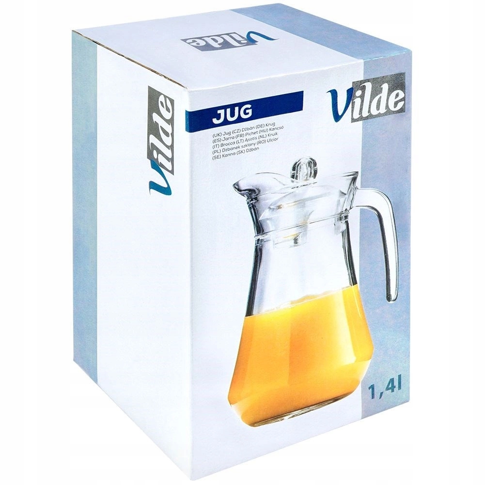 Стеклянный напиток кувшин. Удобно использовать. Благодаря профилированному клюву, налив очень проста. Кувшин отлично подходит для подачи различных напитков. Кувшин выглядит красиво на столе. Он идеально подходит для любой посуды. Он имеет классическую форму, что делает его декоративным элементом. Продукт упакован в красочную упаковку компании. Оригинальный продукт VILDE