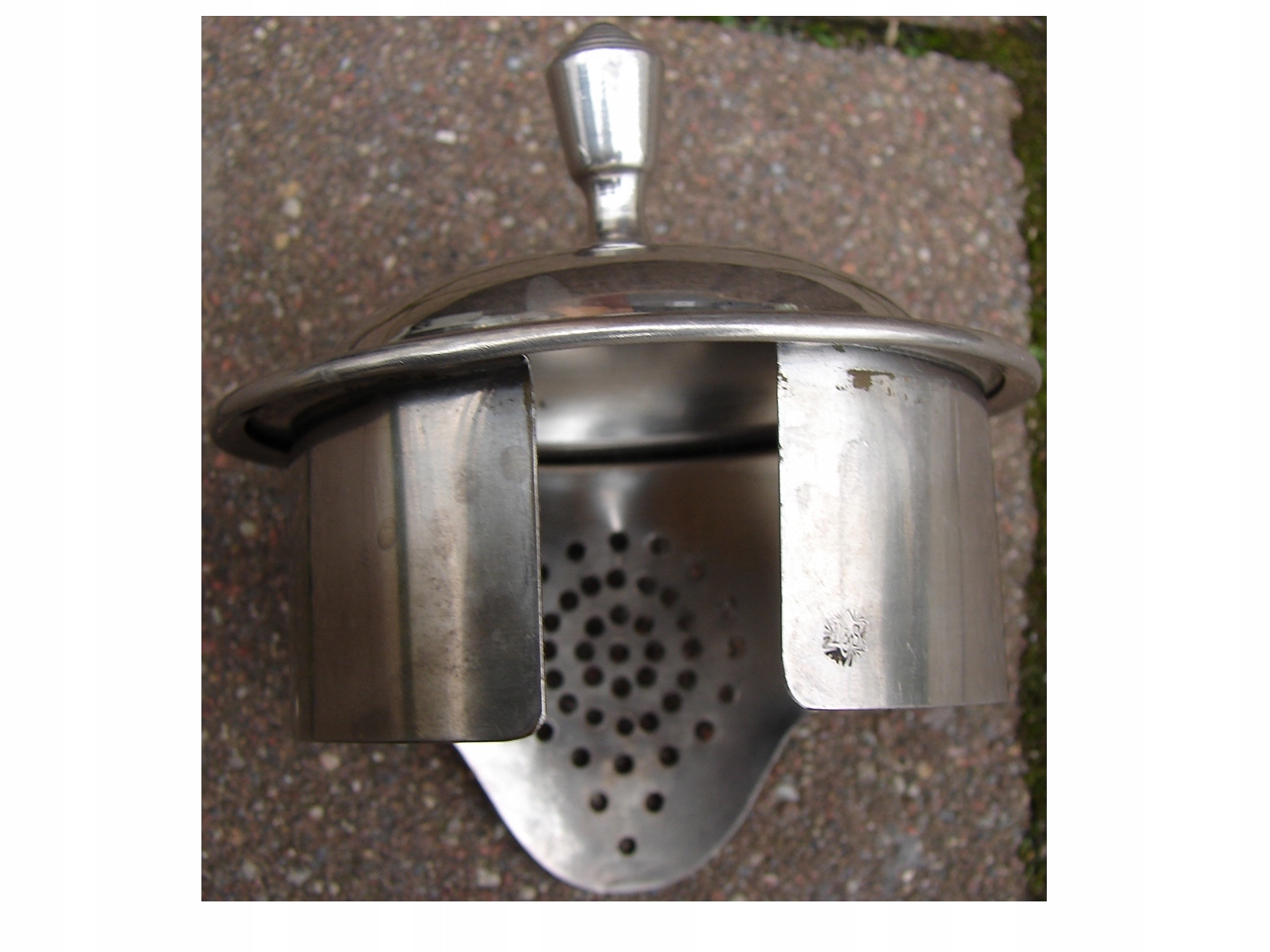 Кувшин имеет оригинальную крышку из латуни, покрытую никелем.