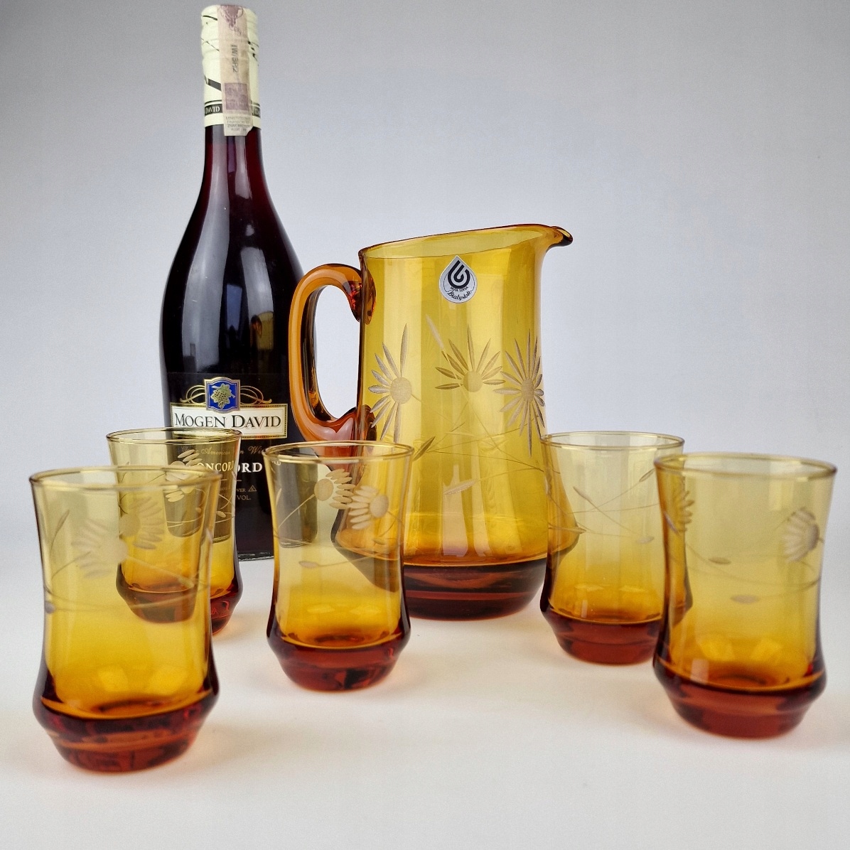 Глечик і 5 склянок Huta Szkła Białystok 1970-ті