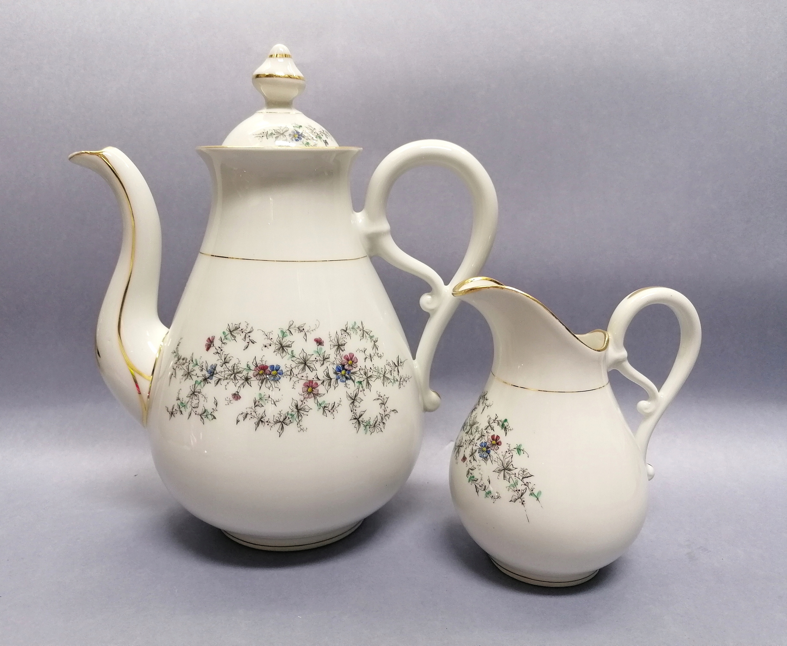 Красивый сервиз: кувшин и молочник.