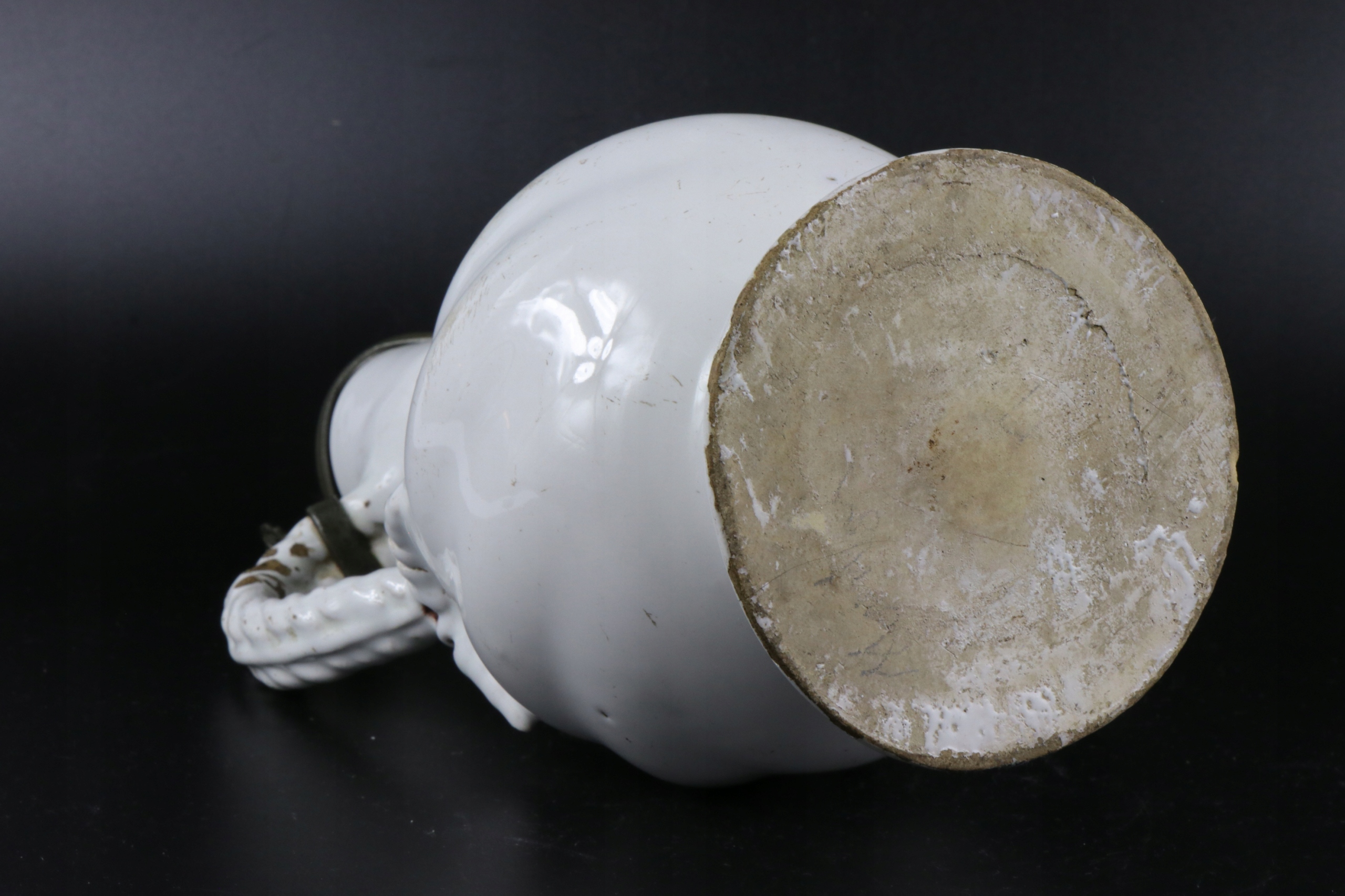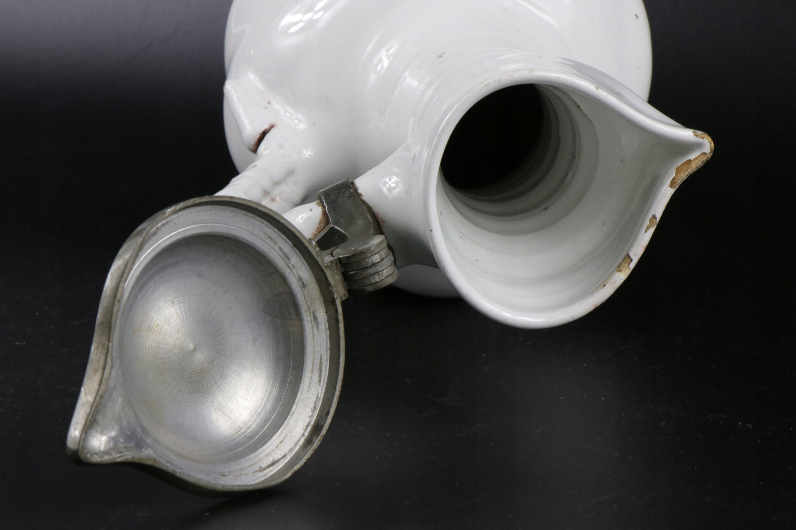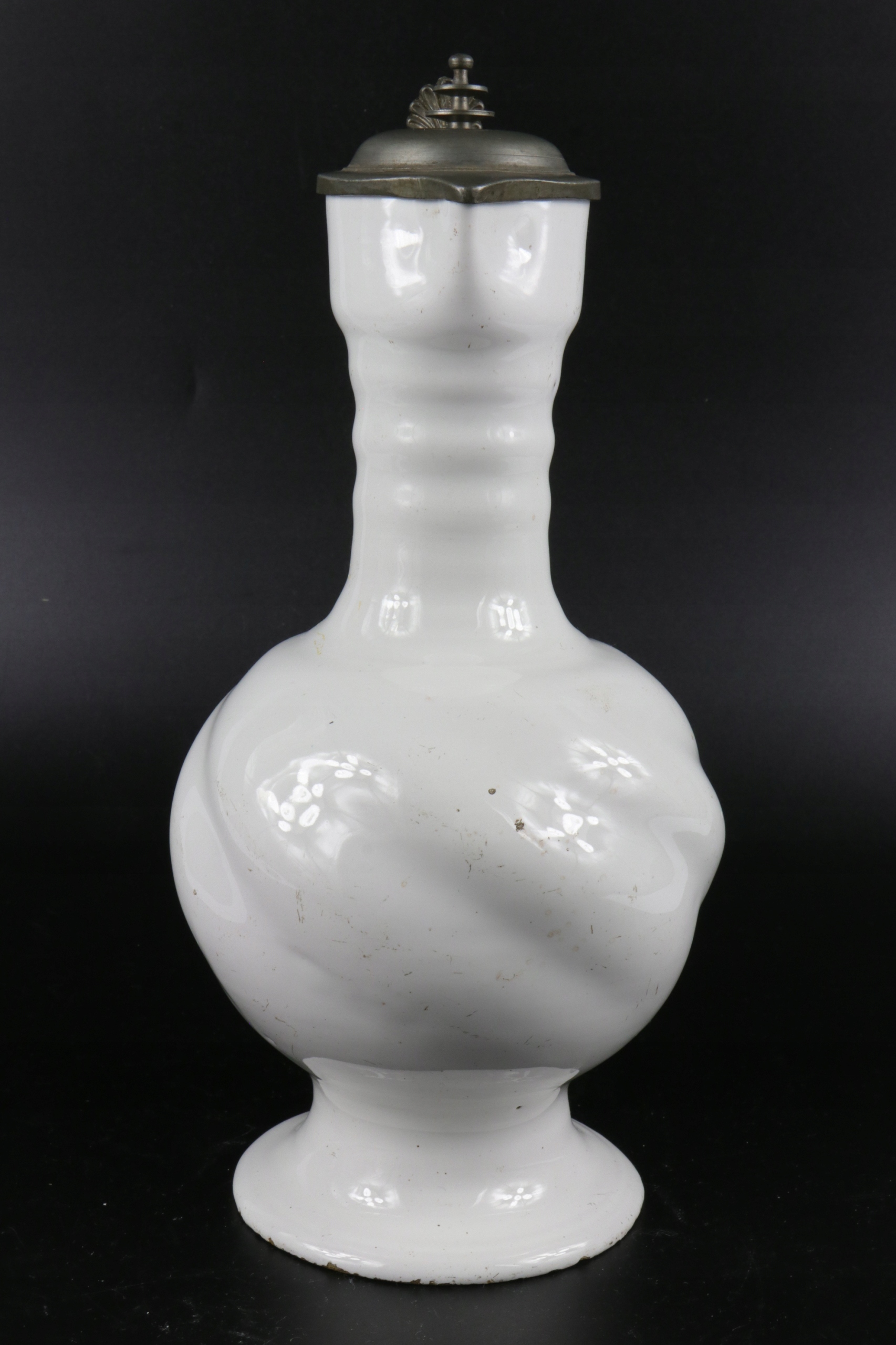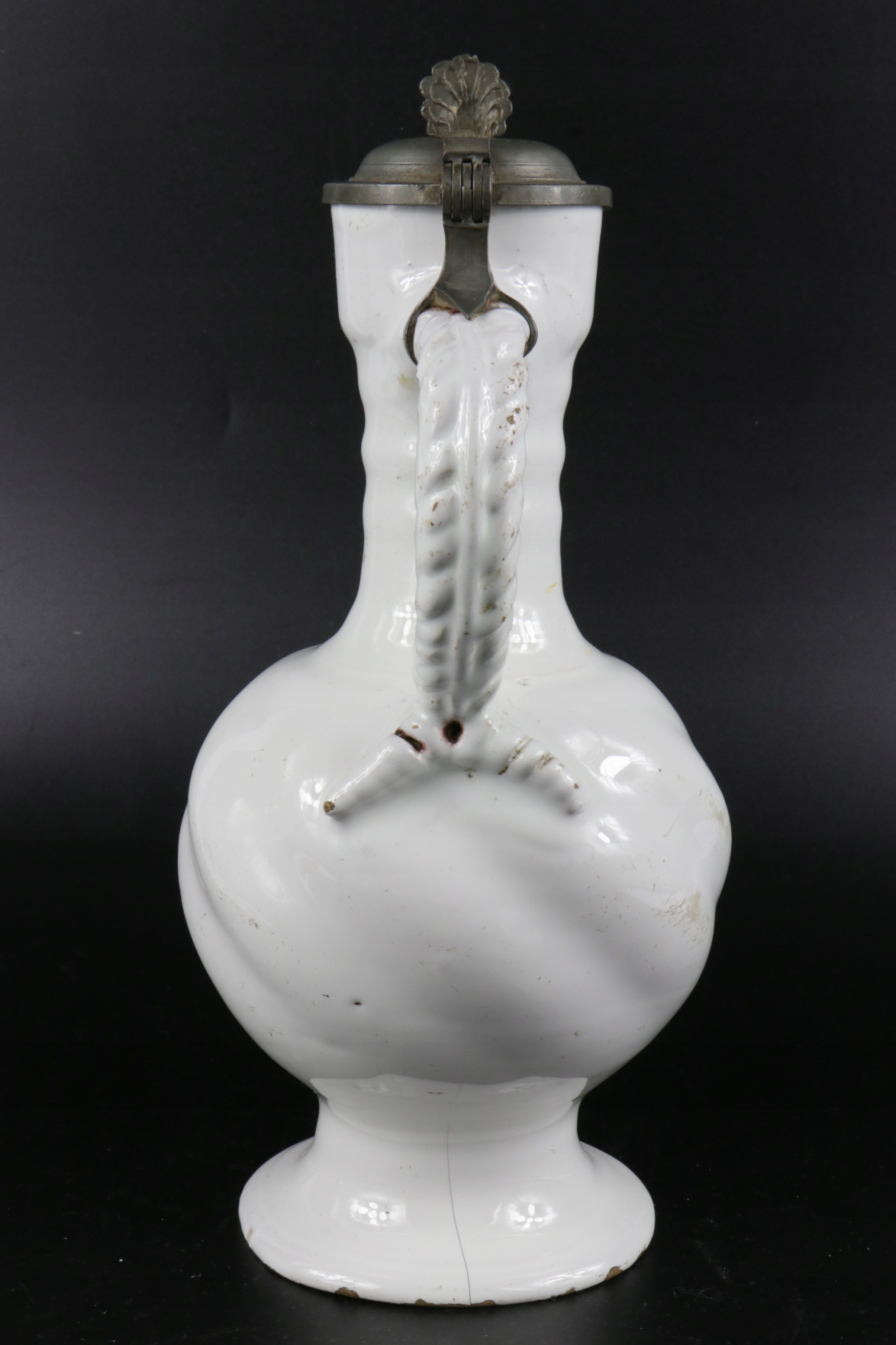 жених очень старый крем xvii или кувшин 18 -го века. Керамика завершена с цинковым возрастом и цинковым корпусом кувшины. Белая и белая кремовая керамика, скрученная живот, ручка, смоделированная в тип оплетки. Очень редкая коллекционная керамика. Возможно, из семинара из города Делфт "de Metal Pot"