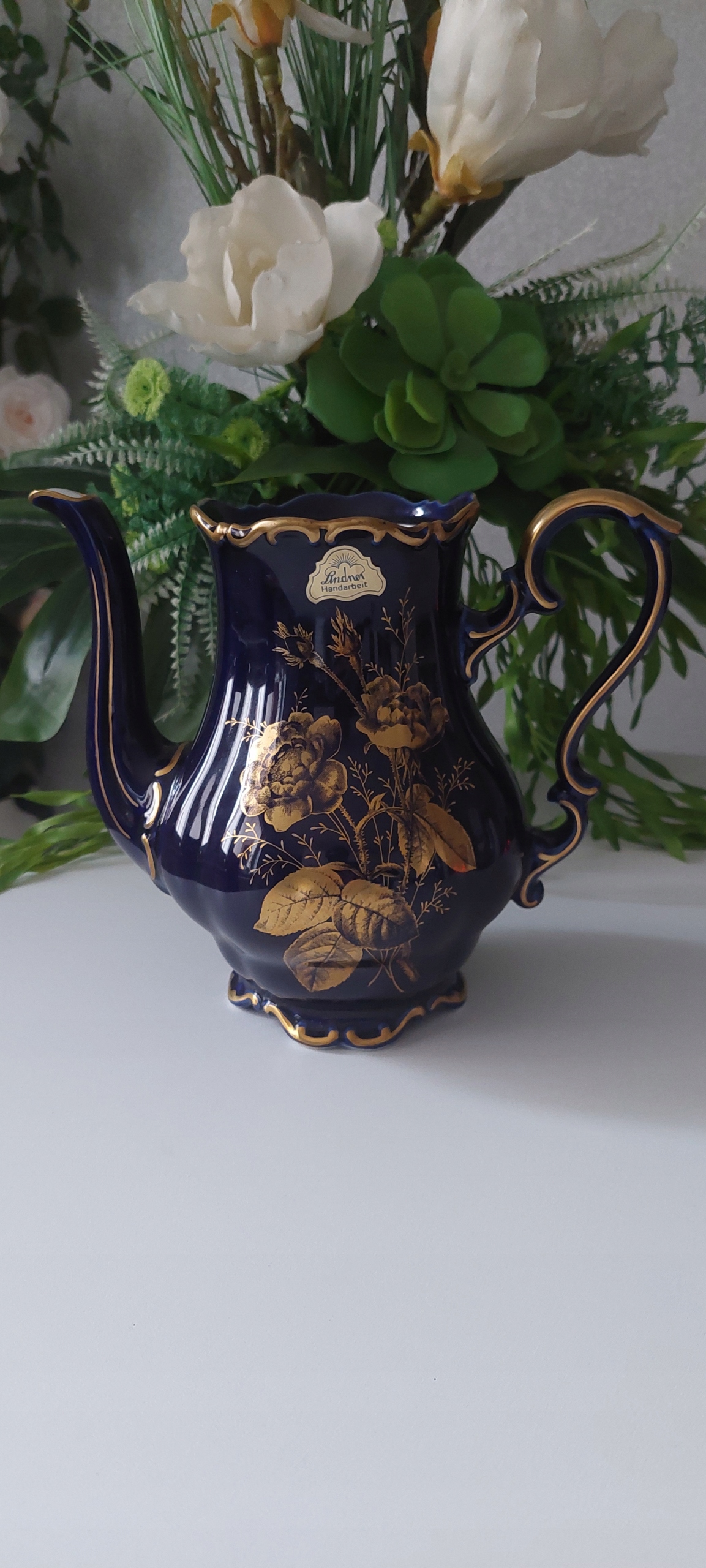 У кувшина Lindner отсутствует крышка, а воронка повреждена и приклеена, как показано на фотографиях, в остальном в очень хорошем состоянии. Высота кувшина 18 см.