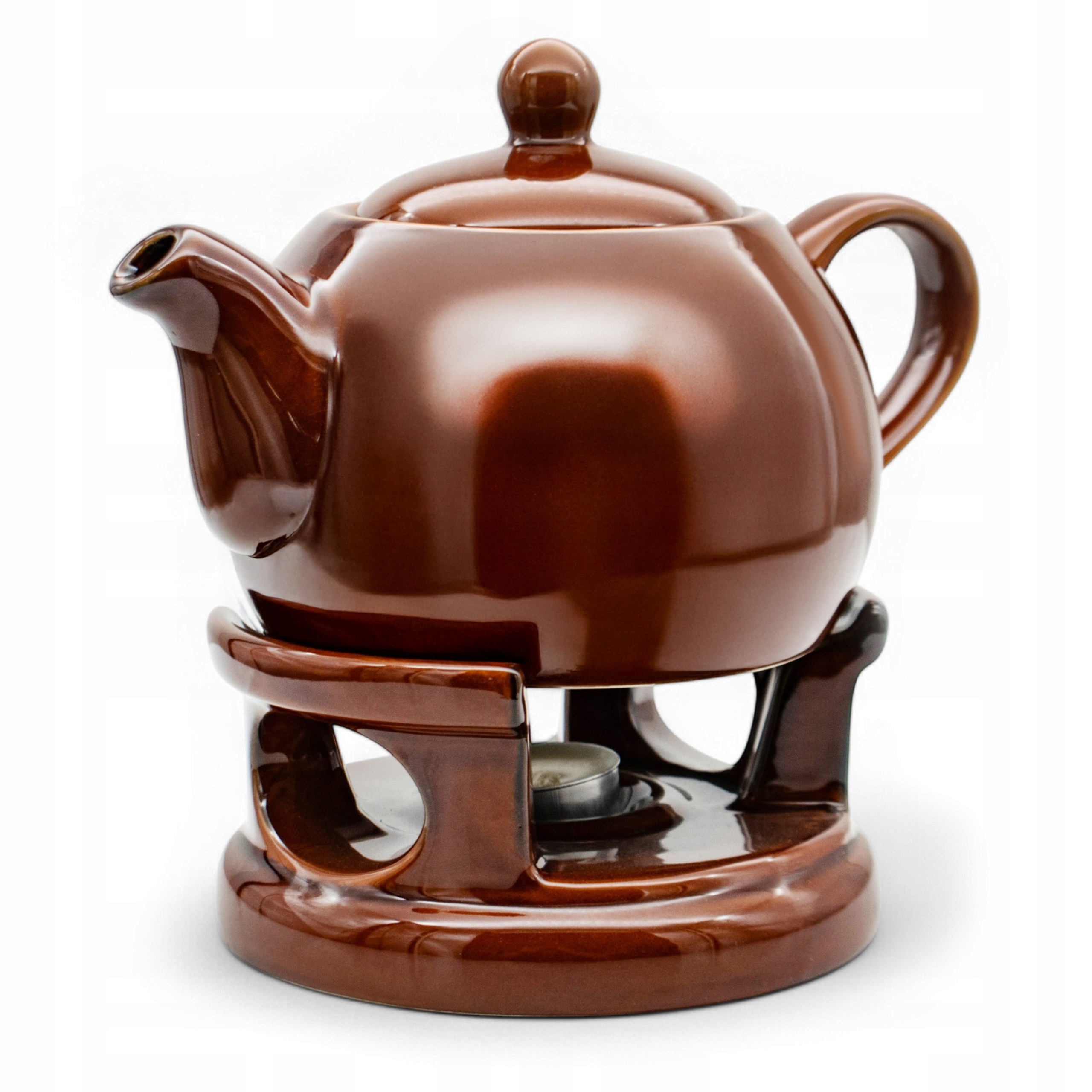 Коричневый керамический кувшин на подогреве чайника для кофе в подарок 1л