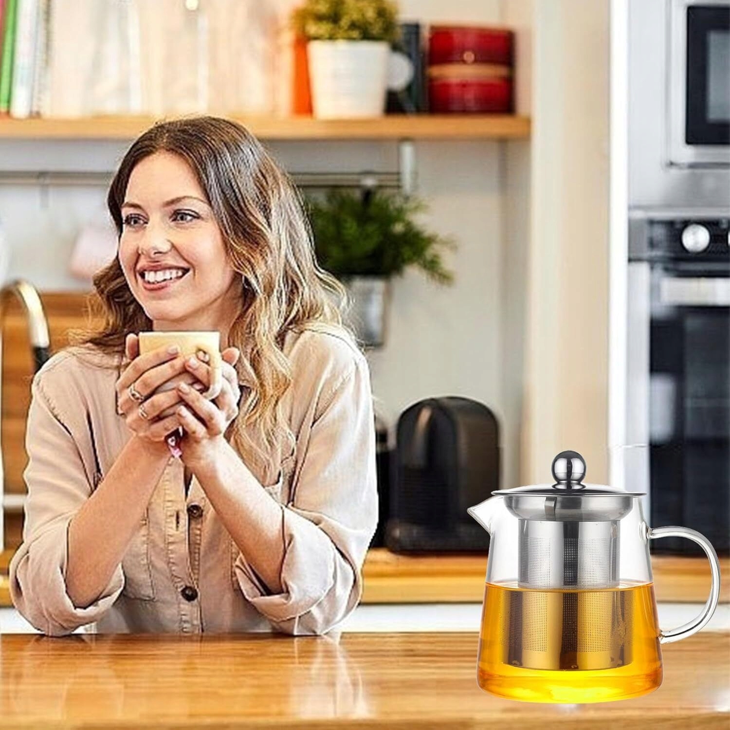 🍵 Чайник из боросиликатного стекла 750 мл: Способен приготовить около 2 чашек любимого чая и идеален, когда у вас есть гости! На крышке имеются 3 вентиляционных отверстия, чтобы пар не поднимал крышку.