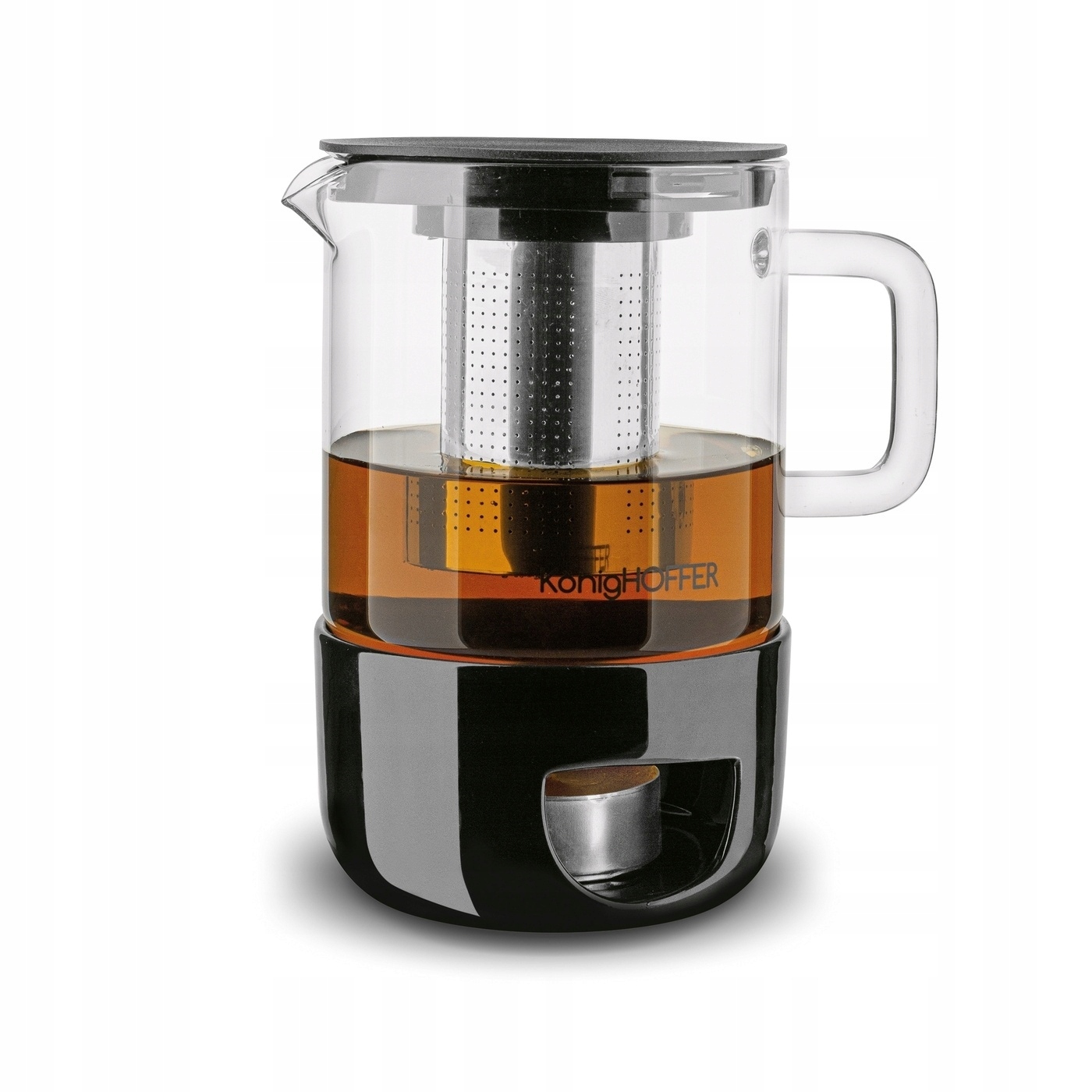 Заварочный чайник Konighoffer Bonito объемом 1 л с заварочным устройством изготовлен из боросиликатного стекла. Он легкий, имеет кристаллическую структуру и прекрасно подчеркивает цвет напитков. Он также обладает высокой устойчивостью к тепловому удару, царапинам и потускнению. В таком кувшине можно приготовить горячий чай и домашний лимонад с кубиками льда. В комплект также входит вставка из нержавеющей стали в виде заварника. Благодаря ему можно эффективно заваривать листовой чай и отделять от напитка замоченную траву. Крышка кувшина изготовлена из черного пластика. Защищает содержимое от загрязнения. Он также защищает от проливания во время транспортировки. Изделие также имеет носик для точного наливания. Стеклянный кувшин можно мыть в посудомоечной машине. Вы также можете элегантно расширить десертный набор, которым пользуетесь каждый день дома. Керамический нагреватель гарантирует, что горячие напитки дольше останутся горячими, например, во время встречи за десертом.