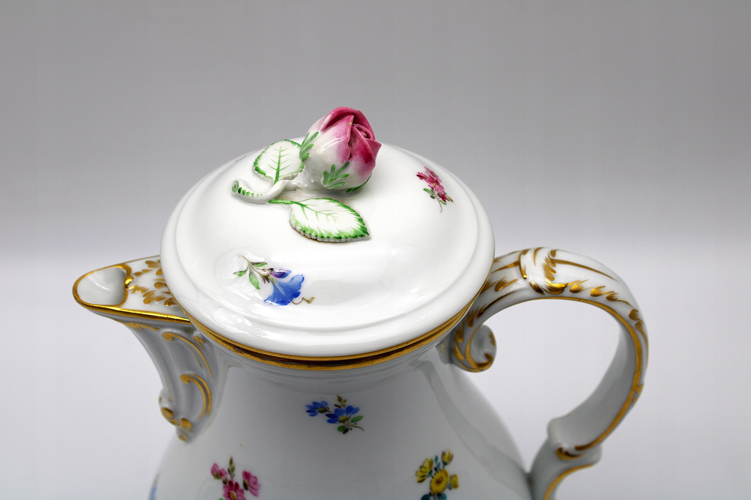 КОФЕ - ЧАЙНЫЙ КУВШИН ФАРФОР МЕССЕН - САКСИ, ВСЯ РУЧНАЯ ПОКРАСКА