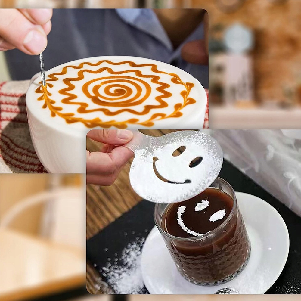 Наш вспениватель молока и ручка для кофе очень практичны, вспениватель молока можно использовать для ежедневной подачи молока, кофе, сока, воды, смузи. и других напитков, его также можно использовать для приготовления латте или вспенивания молока и приготовления любимого напитка. Сочетание молочника и ручки для латте-арта поможет вам создать различные креативные узоры для кофе