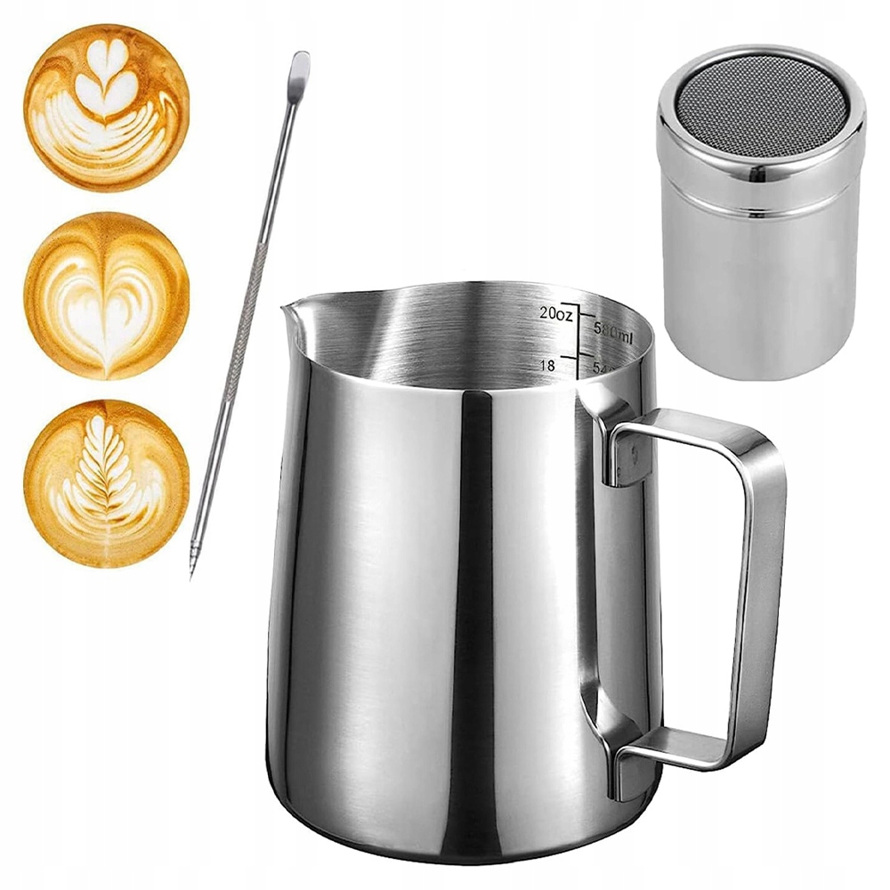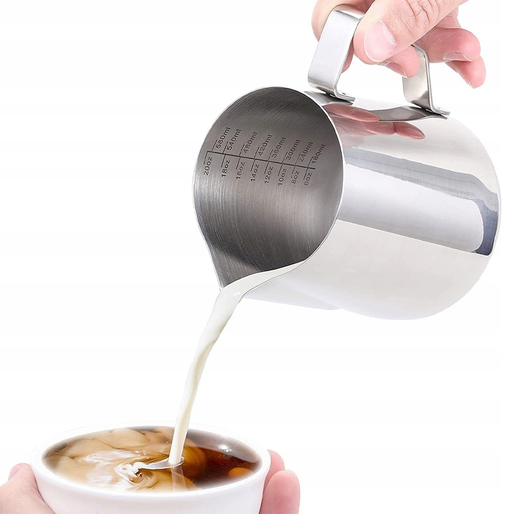 ГЛЕЧОК ДЛЯ ВСПІНЮВАННЯ МОЛОКА ДЛЯ КАВИ 600 МЛ З НЕРЖАВІЮЧОЇ СТАЛІ МІРКА ДЛЯ ВЕРШОК