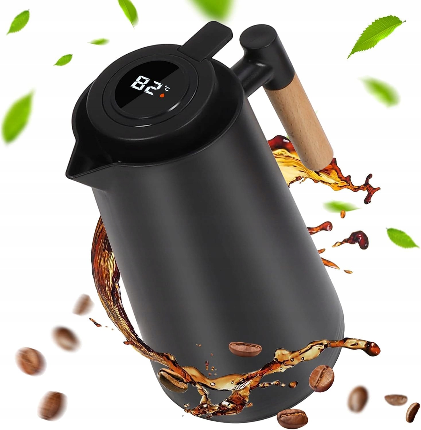 Сочетание матового черного цвета с деревянной ручкой придает термосу современный и стильный вид.