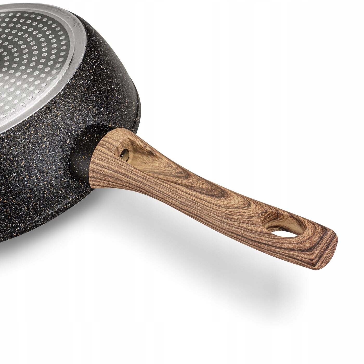Другая информация: - сковорода из литого алюминия, покрытая антипригарным покрытием Ball Blasting с частицы крапчатого черного гранита, - эргономичная мягкая на ощупь ручка из пластика, деревянная с отверстием для подвешивания, привинчена, - сковорода подходит для всех типов плит, включая индукционные, - высота края: 7,5 см.