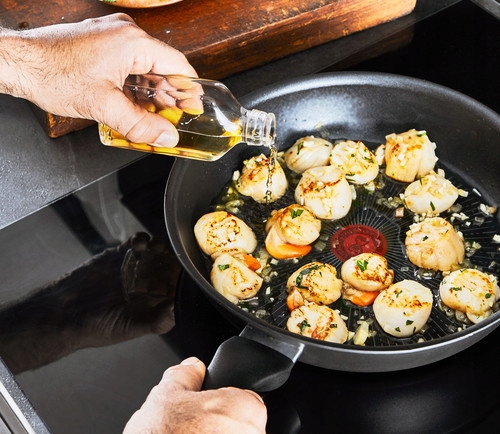 Индикатор становится ярко-красным, когда сковорода нагрелась до идеальной температуры для жарки. Благодаря этому вы приобретаете идеальную консистенцию, цвет и вкус блюд, сохраняя при этом максимальную пищевую ценность.