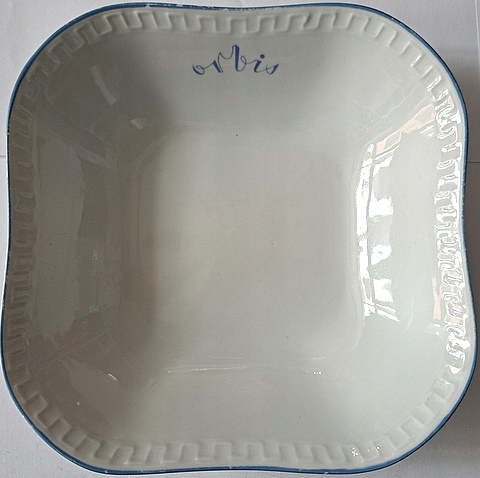 - материал : белый фарфор - орнамент и логотип «ORBIS» синего цвета.