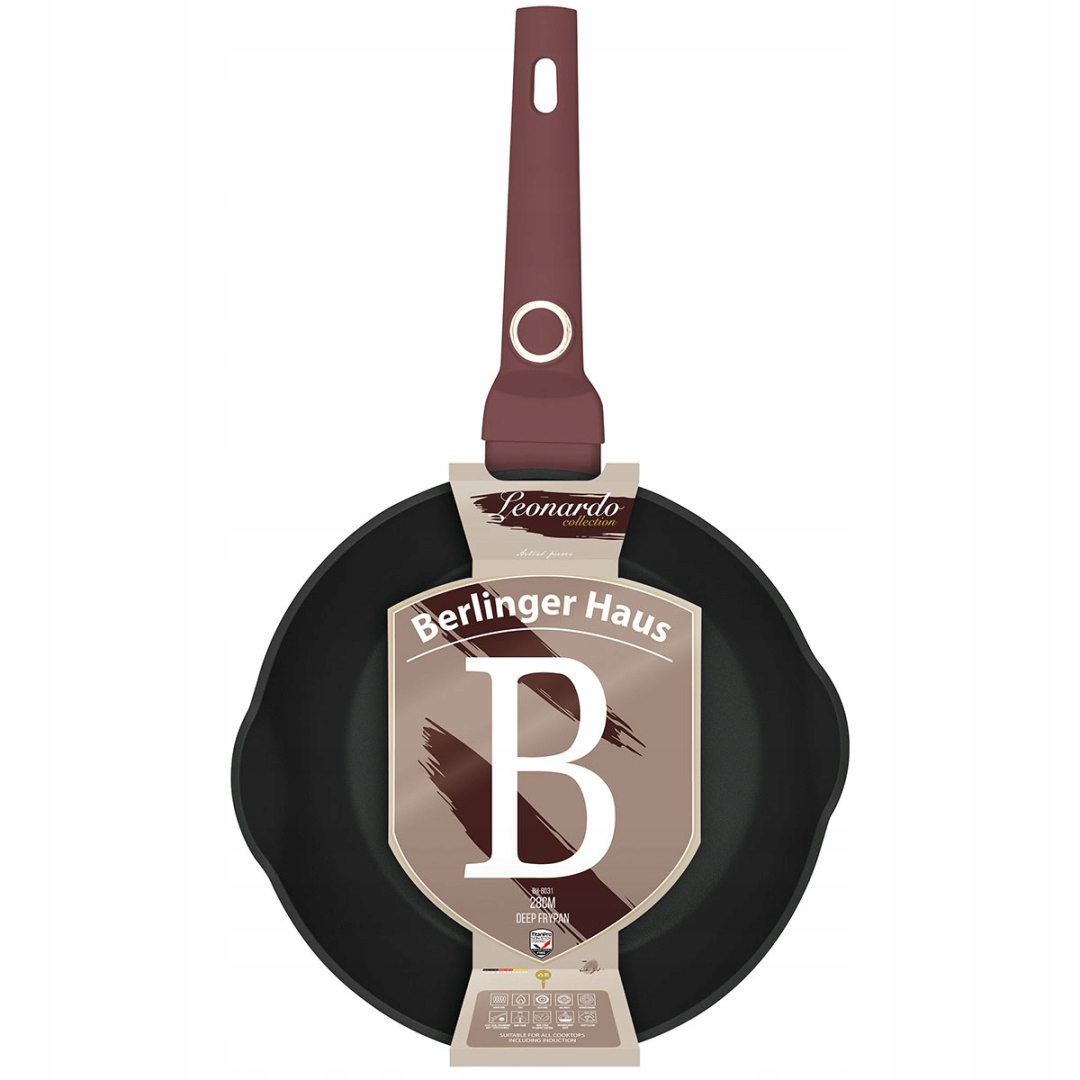 Горшки, кастрюли и аксессуары из серии коллекций Berlinger Haus Leonardo сделаны из алюминия с высоким классом, покрытым внутри тройного титана Tytan Pro, с очень высоким коэффициентом твердости. Внешнее покрытие в матовом бордовом. Эти привлекательные и модные блюда оборудованы как стандартные ручки с мягким прикосновением (силиконовая ручка). Адаптируется ко всем типам плитов: газ, электрический, керамический, галоген, индукция. Турбо -индукционная система (они очень быстро нагреваются) экономит до 35% энергии.