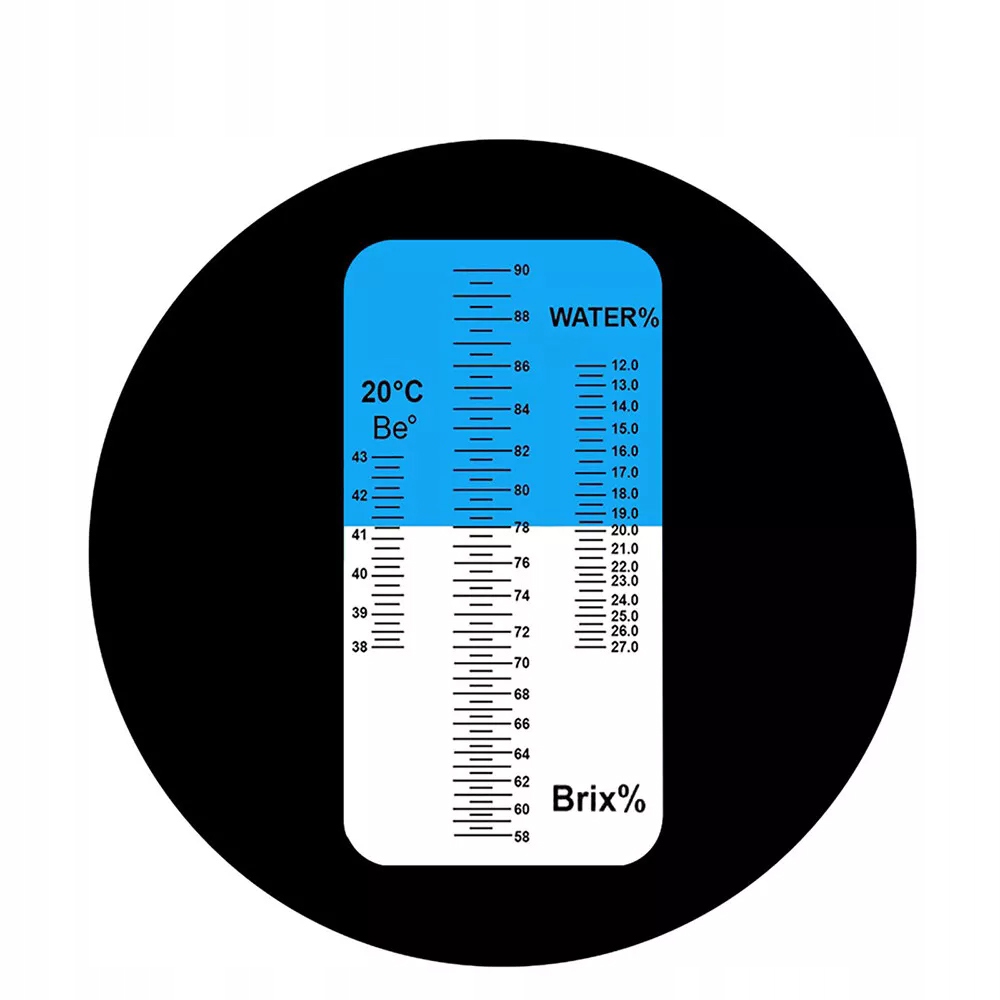 - Диапазон измерений: Содержание воды (влажность) 12-27%, Brix 58-92%, Baume 38-43