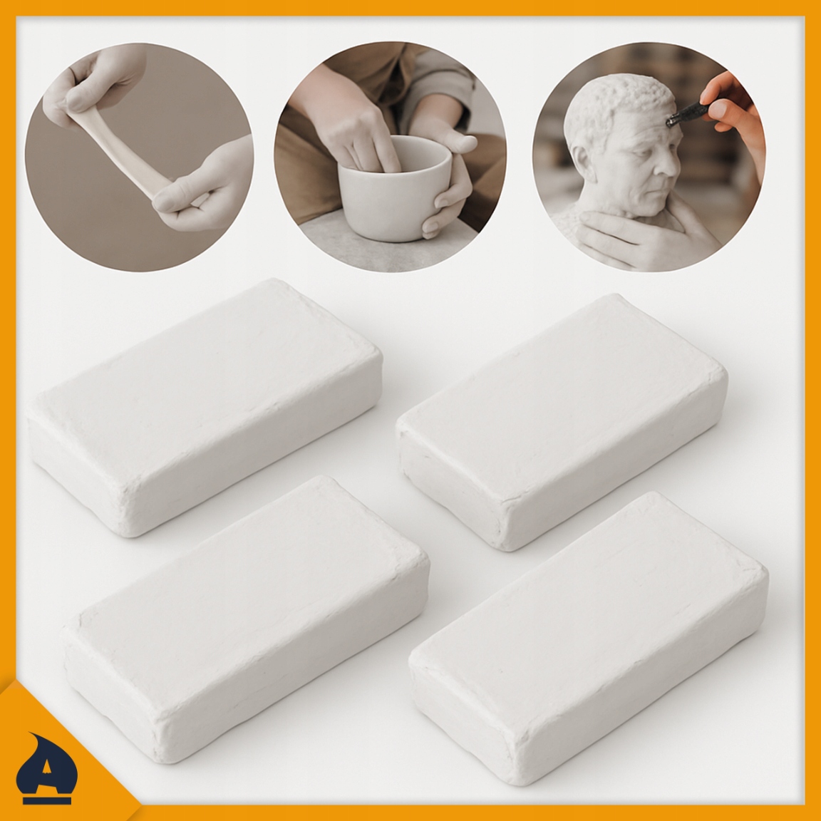 Самозатвердевающая глина для скульптуры, керамики, лепки, белая, набор 4х500г