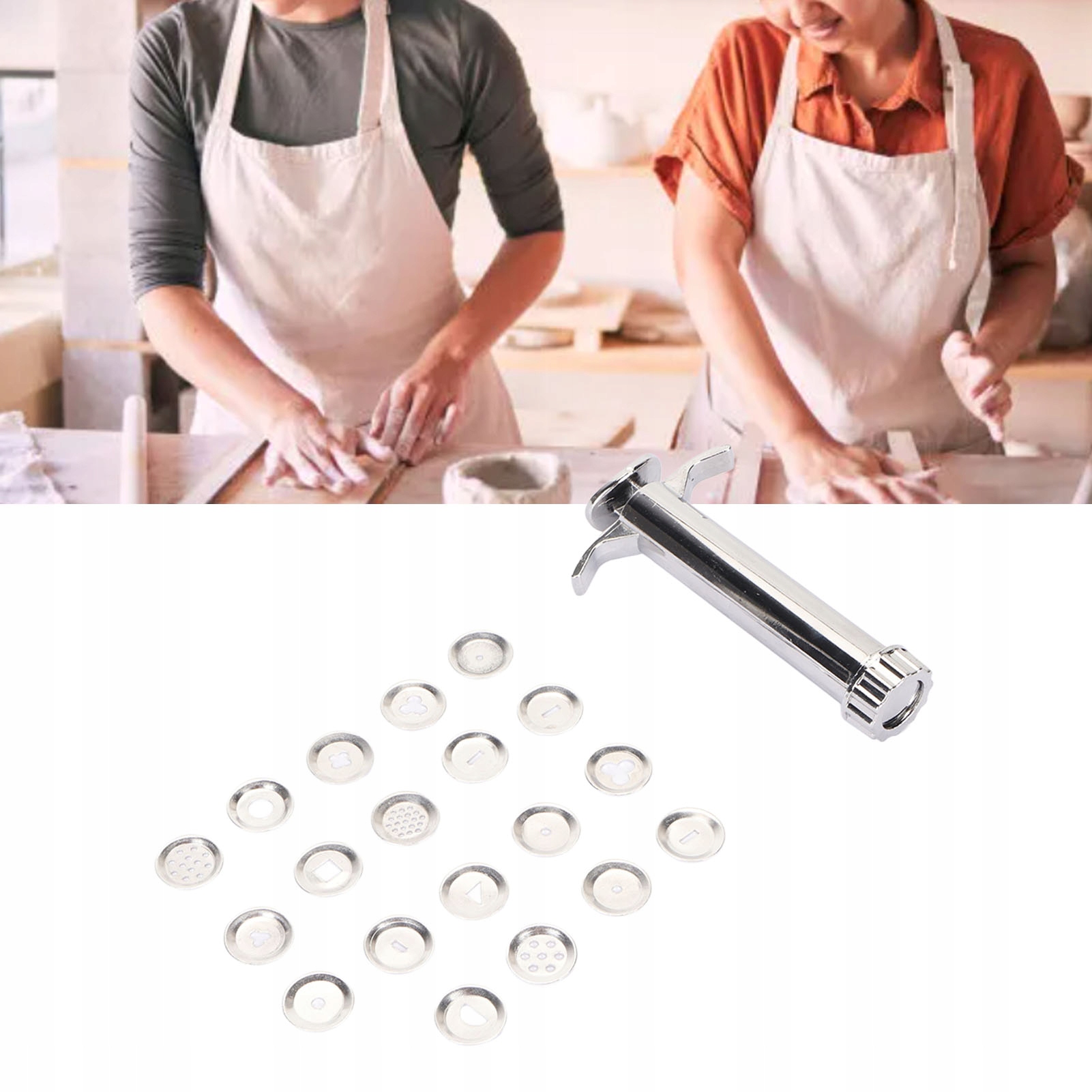 2. 19 Дисков: Этот экструдер с сахарной пастой оснащен 19 дисками с различными дизайнами, которые могут создавать разные ленты для удовлетворения всех ваших потребностей в художественном проекте.