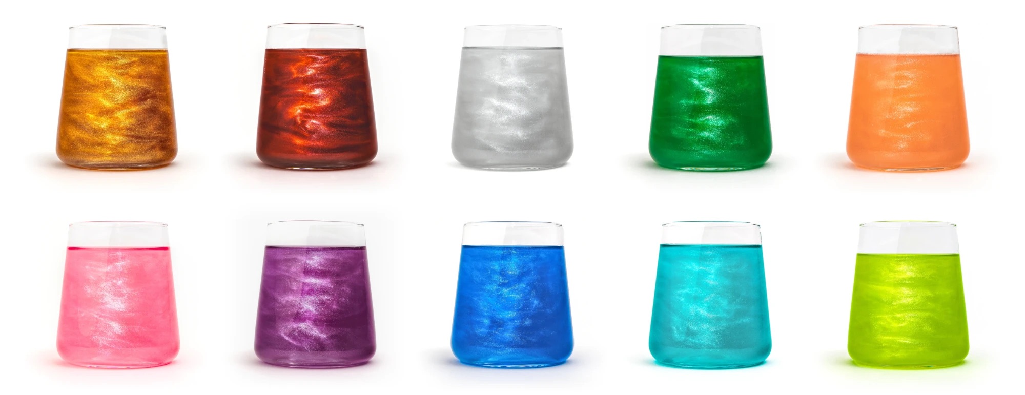 Что отличает наши блестеры от других красителей, так это то, что они были созданы для напитков. Они быстро и легко растворяются в жидкостях, в то время как съедобный блеск остается подвешенным.