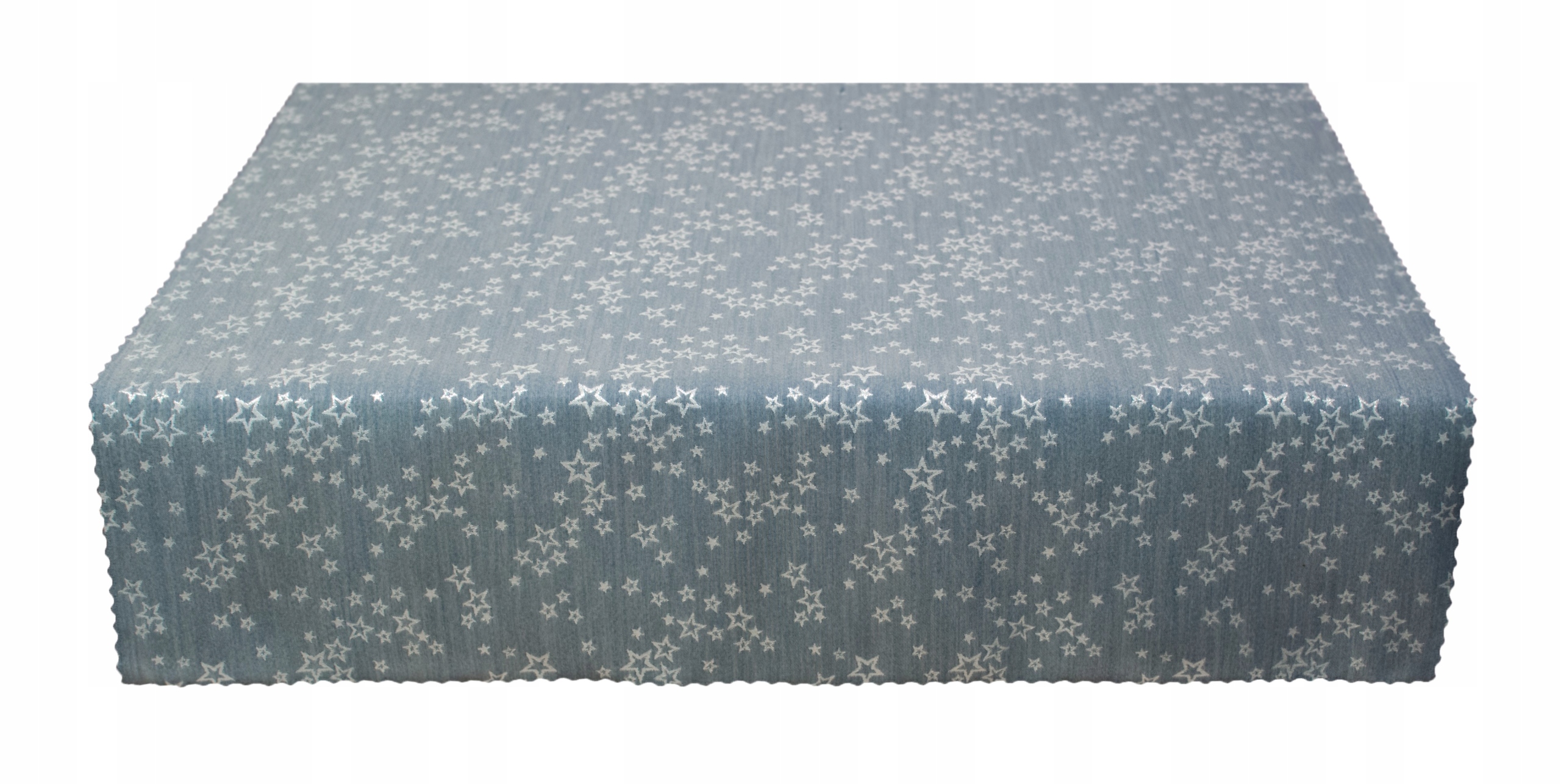 роскошную (премиум-класса) жаккардовую дорожку для рождественского стола. С одной стороны - голубые звезды на серебристом фоне, с другой - наоборот.