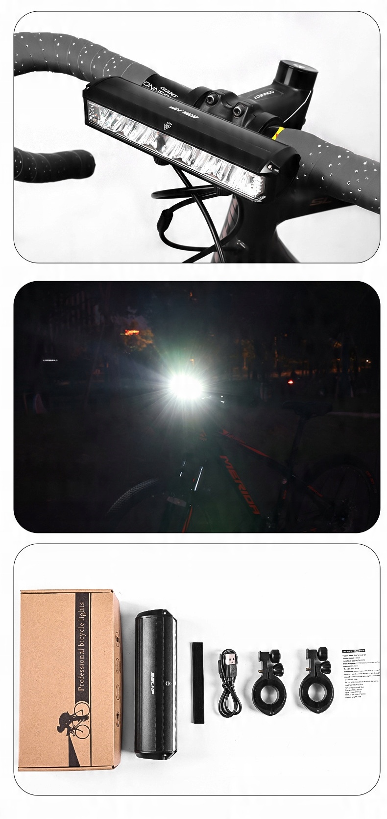 GLIWAY Lampka przednia rowerowa z ładowaniem USB 3250 lumenów