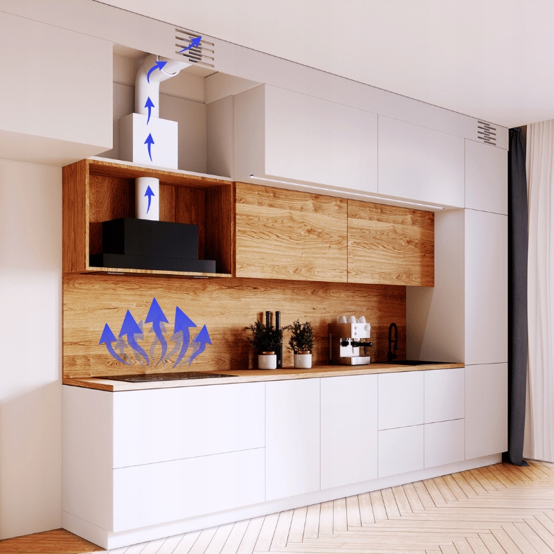 Универсальный поглощение супрессора TA 1.1. Шум, увеличивая комфорт приготовления и пребывание на кухне Энергия акустической волны превращается в тепло внутри звукового материала, эффективно молчала кухонный капюшон.