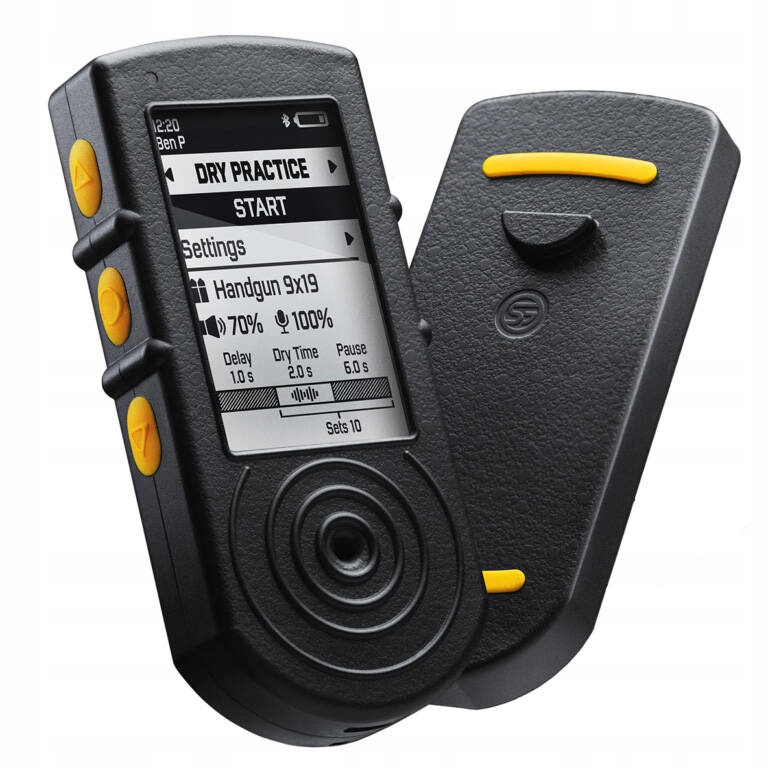 Устройство позволяет соответствовать параметрам работы, то есть звучит таймер и чувствительность датчика. Кроме того, у него есть набор собственных пресетов, адаптированных к конкретным типам оружия. Таймер записывает звуки спускового триггера. Внутренняя память может зарегистрироваться до миллиона повторений и дополнительно сочетаться с другим устройством. Центр устройств - это 2,6 -дюймовый экран, и он работает с использованием 3 кнопок.