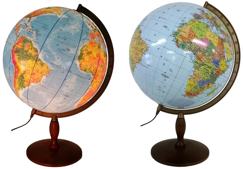 Инновационное решение с двойной картой 2-в-1. Выделенный глобус представляет собой физическую карту. При выключении карта меняется на политическую. Итак, у нас есть два типа карт на одном глобусе.