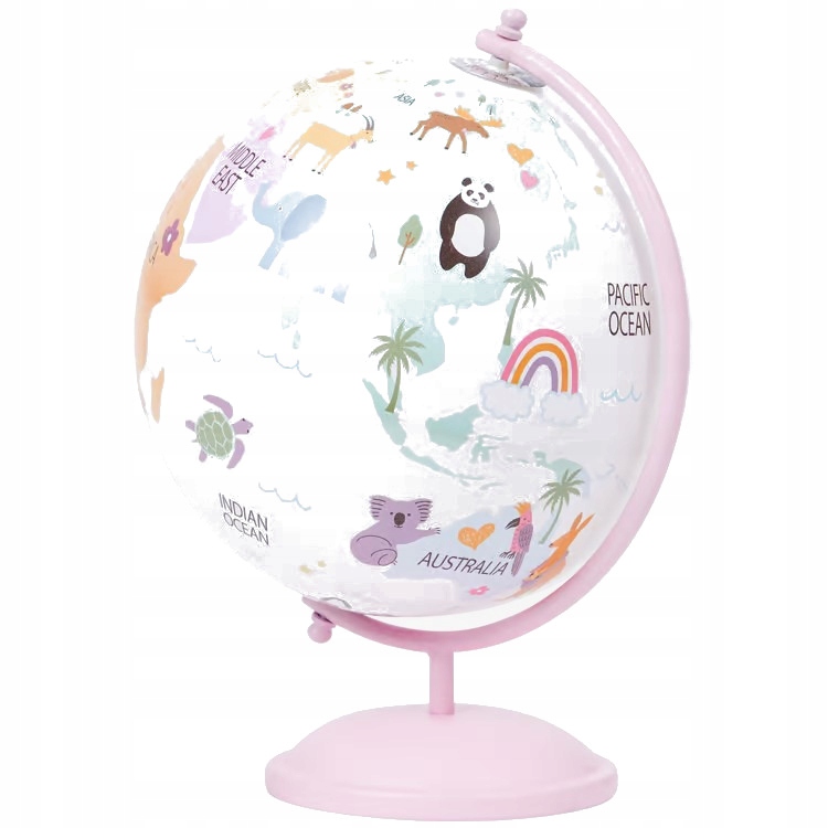 Образовательный вращающийся глобус для детей - Животные в мире (Диаметр 27,5 см) - РОЗОВЫЙ