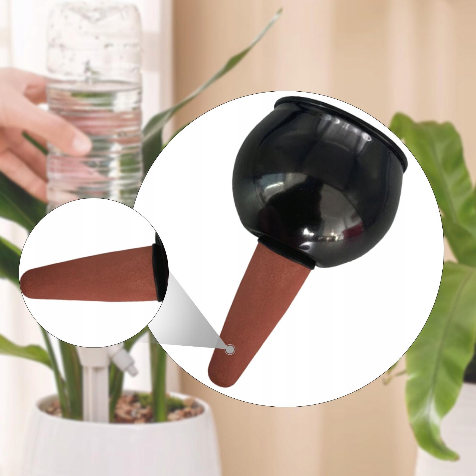 [Простая в использовании конструкция для наполнения водой]: автоматическая поилка для растений проста и эффективна в использовании. Просто наполните земной шар водой и поместите его в почву; он будет постепенно выделять воду с течением времени, обеспечивая постоянную подачу воды вашим растениям.