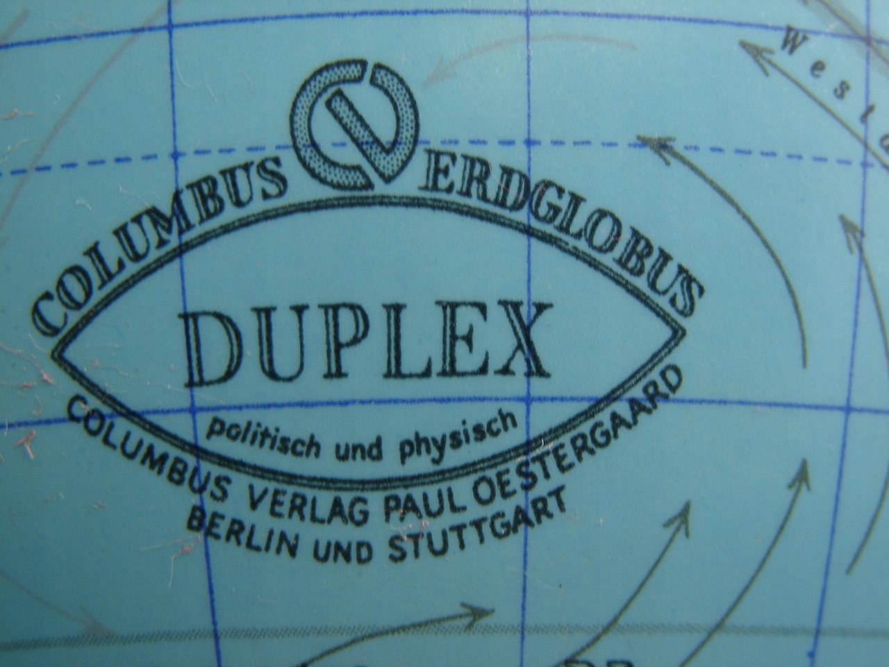 Глоб немецкой компании Columbus Verlag Paul Oestergaard 1960 -е годы