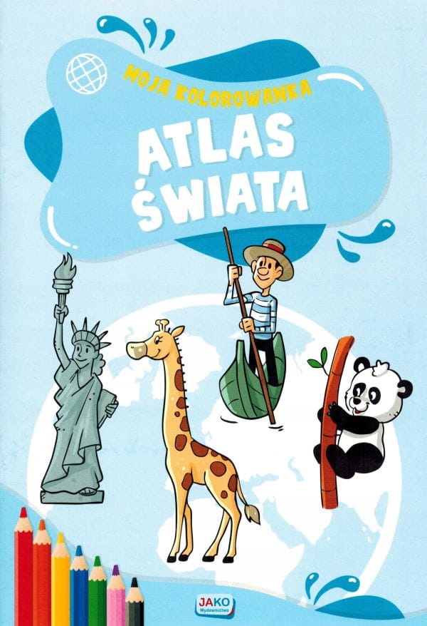 К глобусу прилагается атлас мира для детей в виде книжки-раскраски.