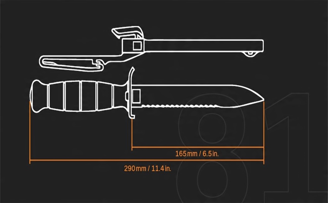 Нож выживания FM81 оснащен двусторонней гардой из кованой стали, предохраняющей руку от соскальзывания на лезвие. Кроме того, изогнутая часть крестовины может служить открывалкой для бутылок. Рукоять изготовлена из прочного полимера, также используемого при производстве боевых пистолетов австрийской марки Glock. Этот материал прекрасно поглощает удары и не скользит, обеспечивая удобный и надежный захват в любых условиях. Ножны, изготовленные из того же полимера, имеют простые и функциональные решения. Его можно прикрепить к ремню (благодаря петле), жилету или снаряжению благодаря универсальной системе крепления. Ножны имеют пружинный стопорный механизм, который надежно удерживает нож на месте и позволяет быстро его извлечь. Ножны также обладают уникальной функцией, позволяющей вставлять лезвие в обоих направлениях, что чрезвычайно удобно как для правшей, так и для левшей.