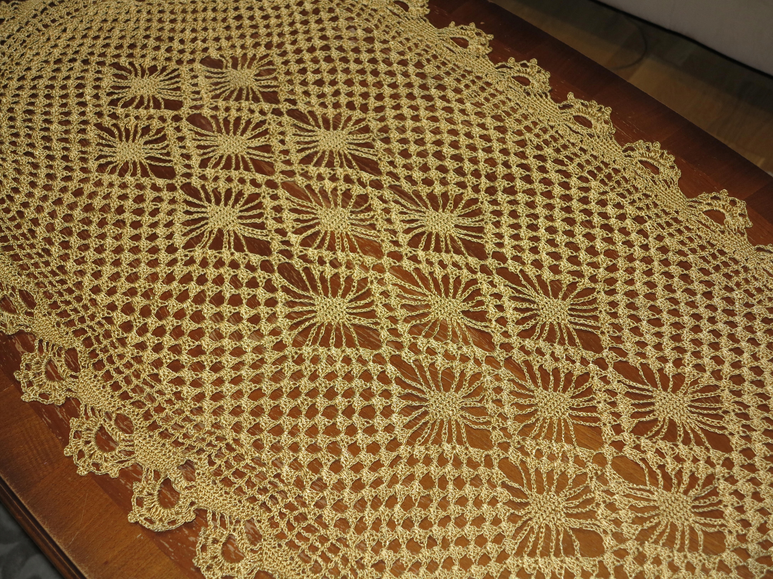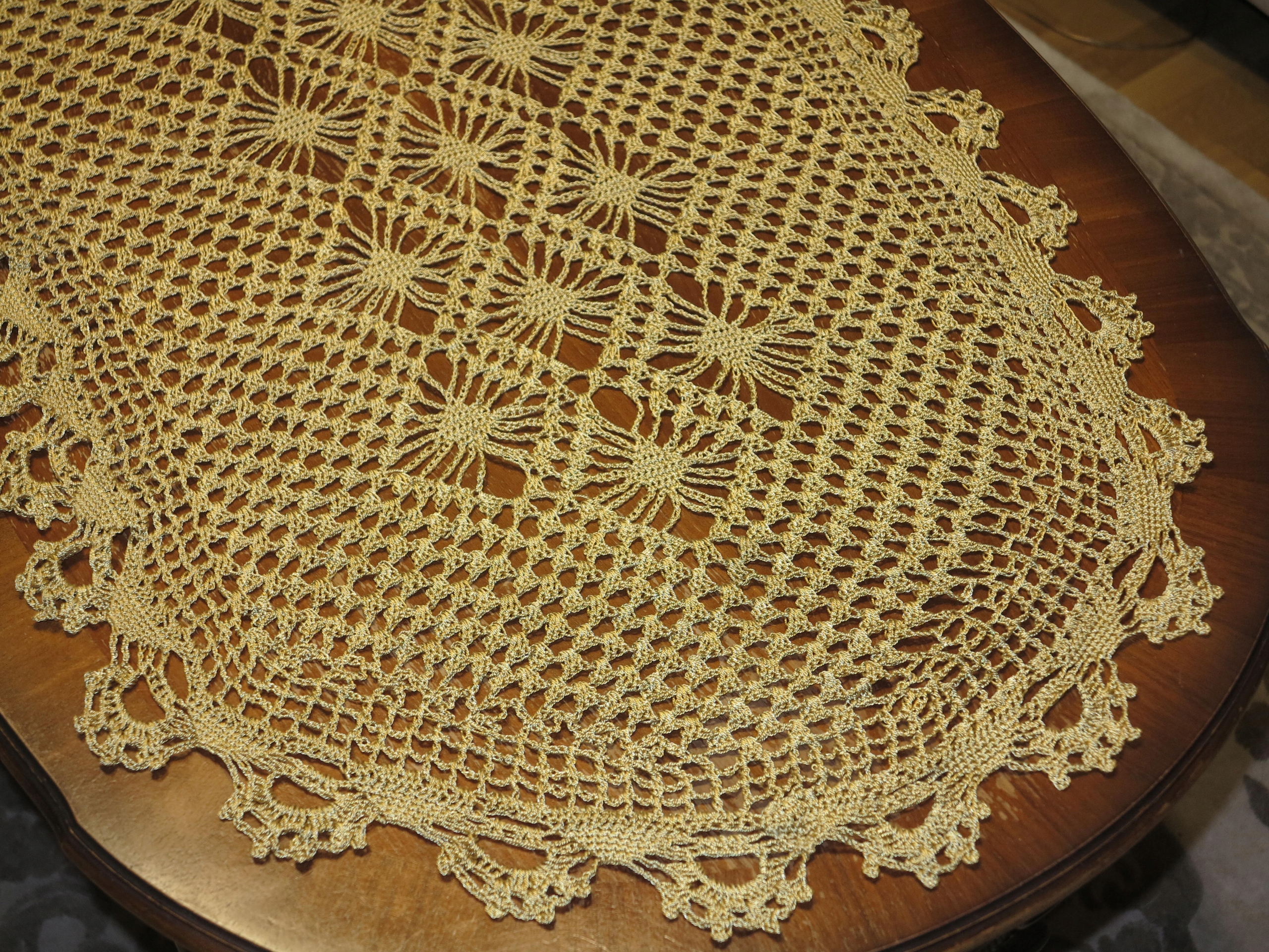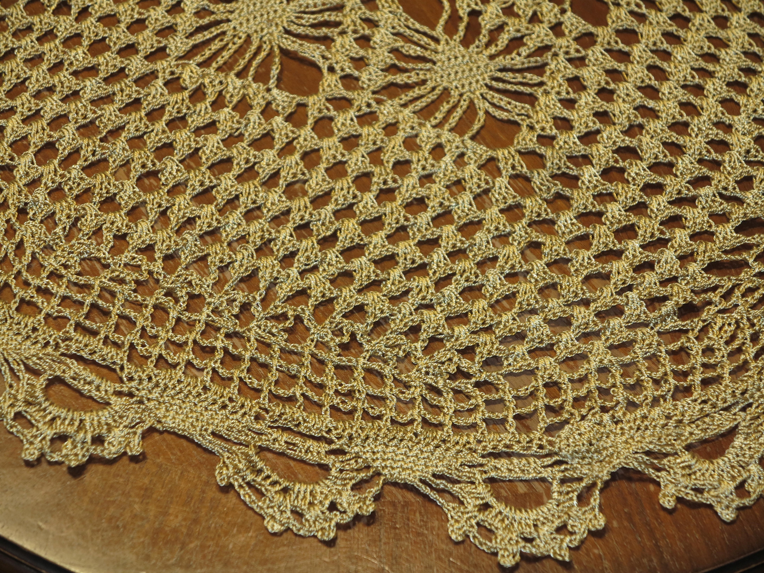 замечательный большой сервник ручной работы из шелковых кордонов, толстый в цвете старого золота.