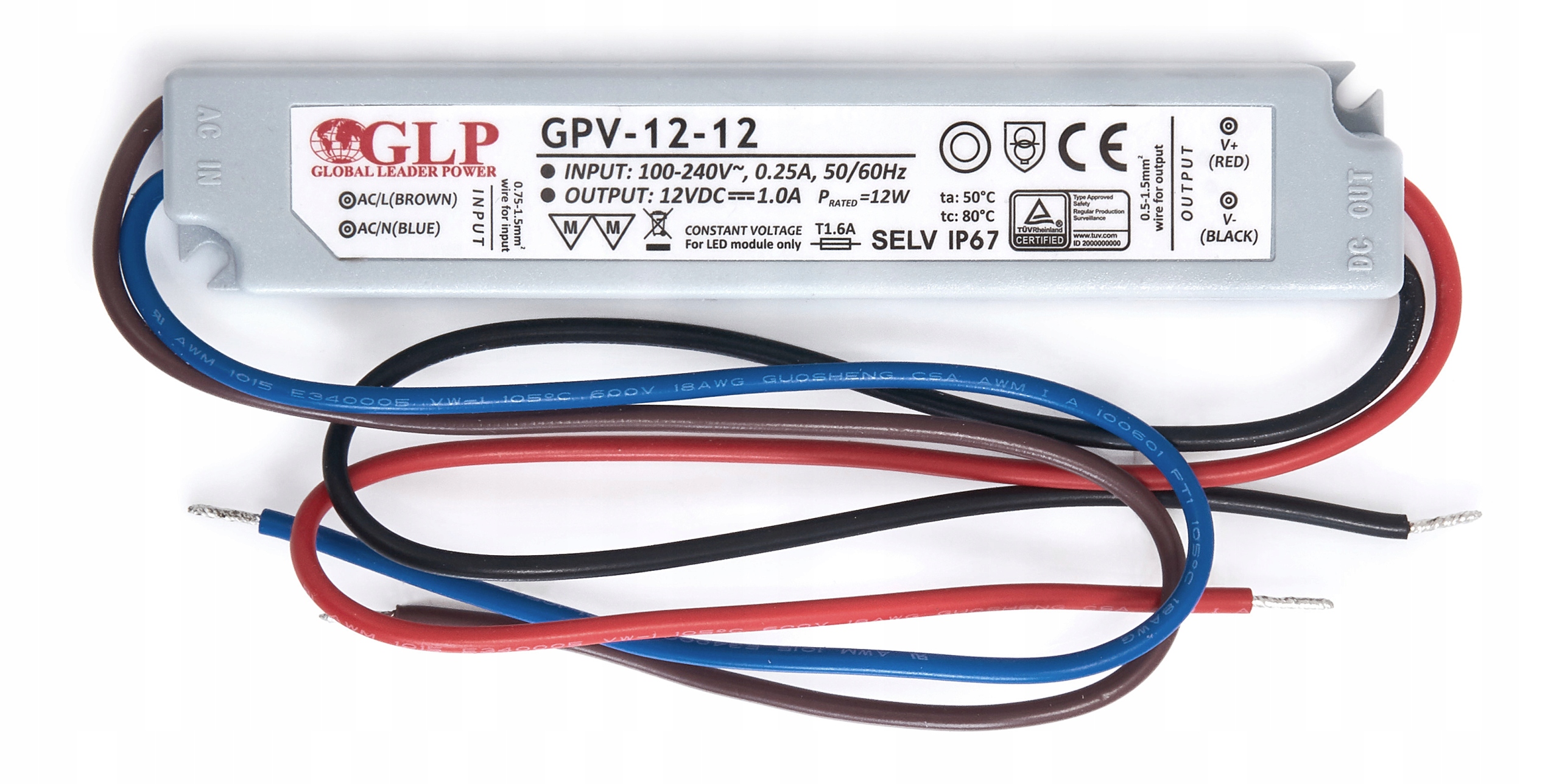 Блок питания GLP 12 В, 12 Вт, 1 А, IP67 — гарантия 5 лет