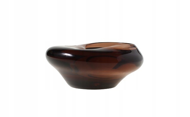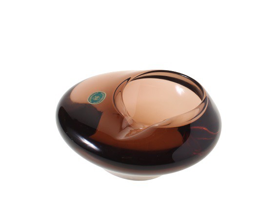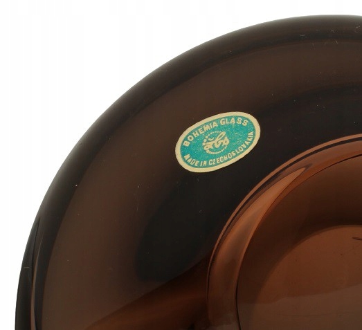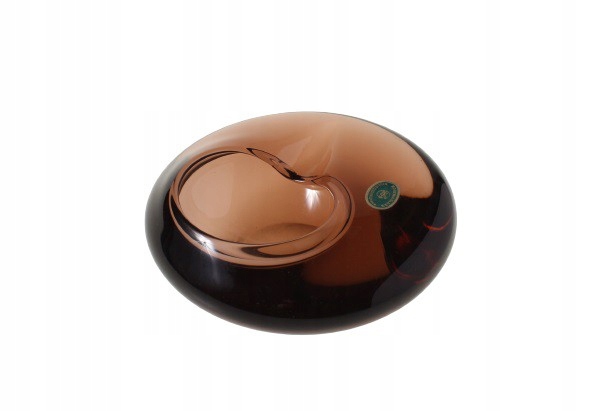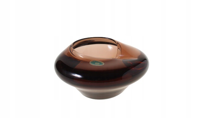 Пепельница изготовлена из натриевого стекла ручной формовки, окрашенного в массе в коричневый цвет. Произведен на Железнобродском стекольном заводе. Предположительно это один из проектов Мирослава Клингера. Чехословакия, 1960-е годы.