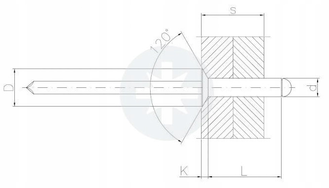 ГЛУХИЕ ЗАКЛЕПКИ С ГОЛОВКОЙ 120° АЛЮМИНИЙ/СТАЛЬ 4 x 12 мм КОНИЧЕСКАЯ ЗАКЛЕПКА