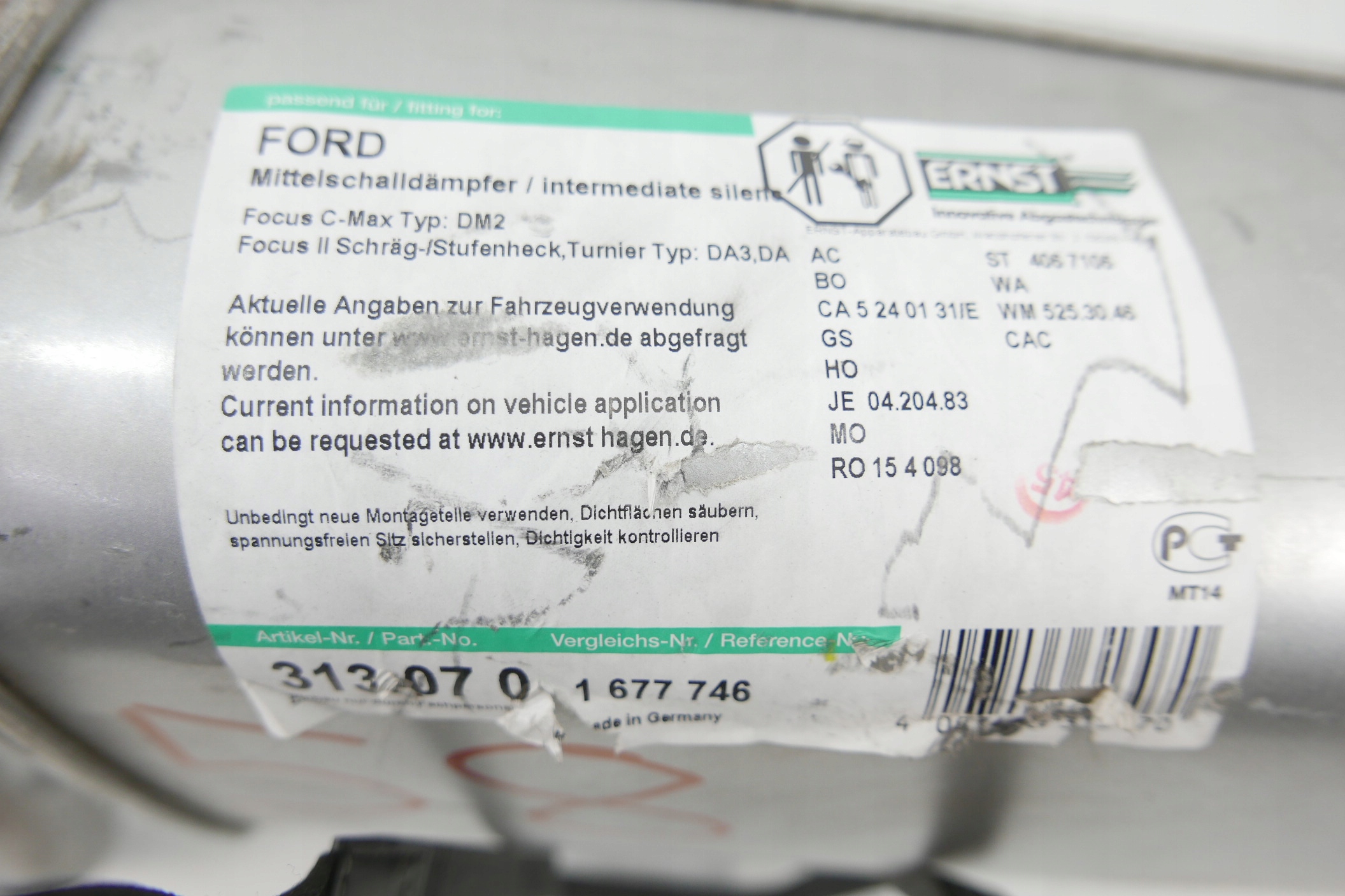 ГЛУШИТЕЛЬ FORD C-MAX FOCUS 1.4 1.6 ERNST