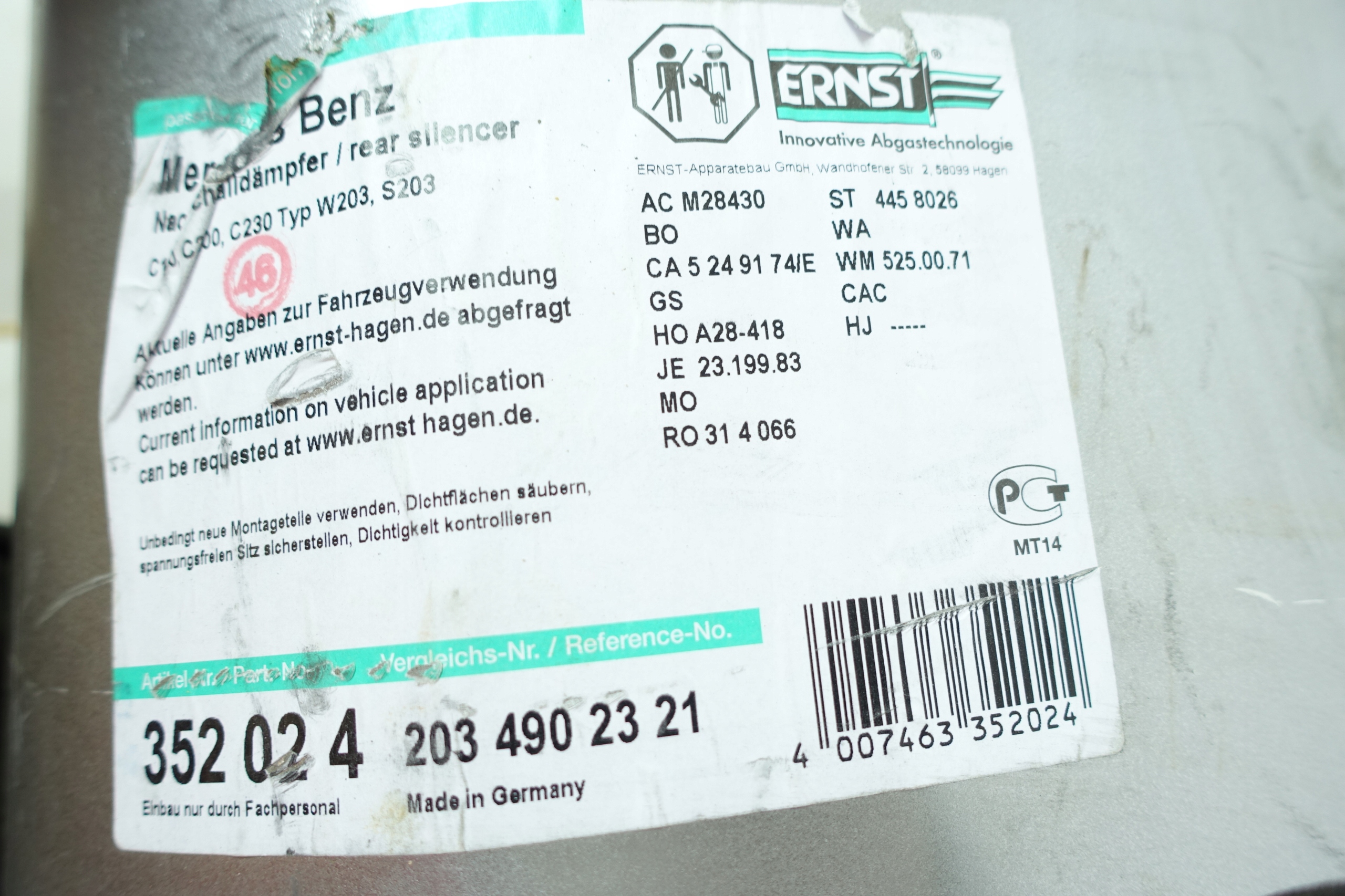 ГЛУШИТЕЛЬ MERCEDES C W203 1.8 2.0 352024 ERNS