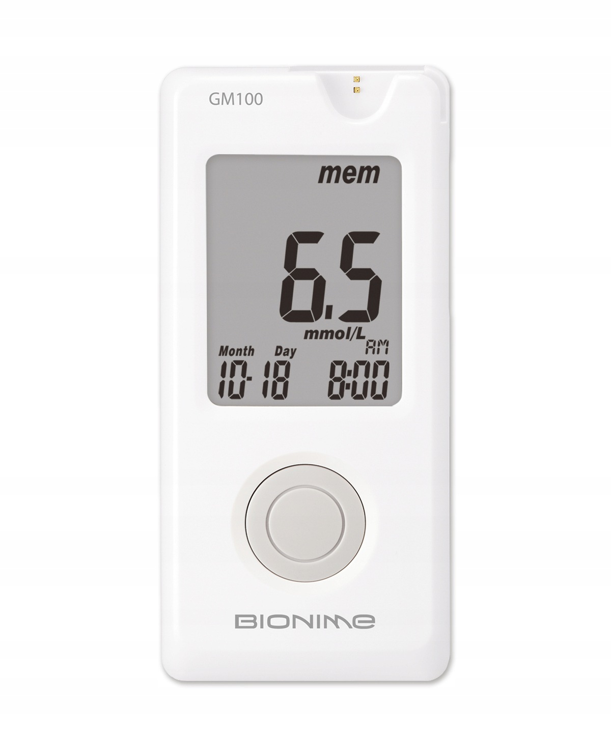 - Функция автокодирования:Глюкометр Bionime GM100 имеет функцию автоматического распознавания кодового номера тест-полосок.