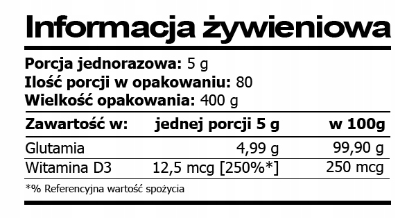 Порошок глютамина (99,9%), холекальциферол (витамин D)