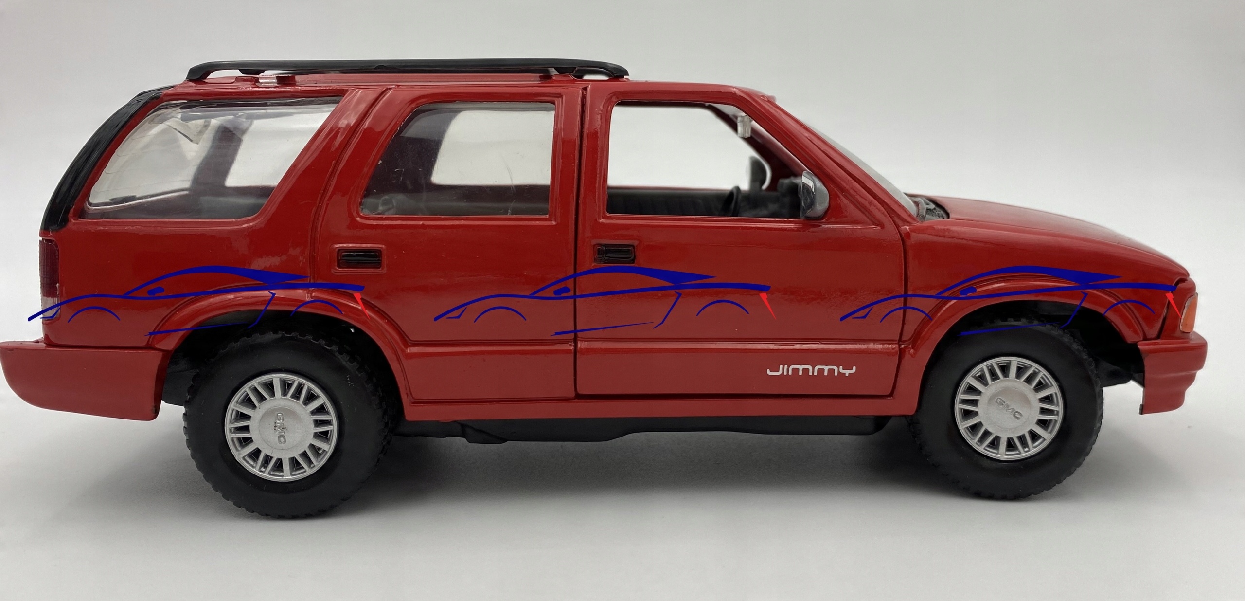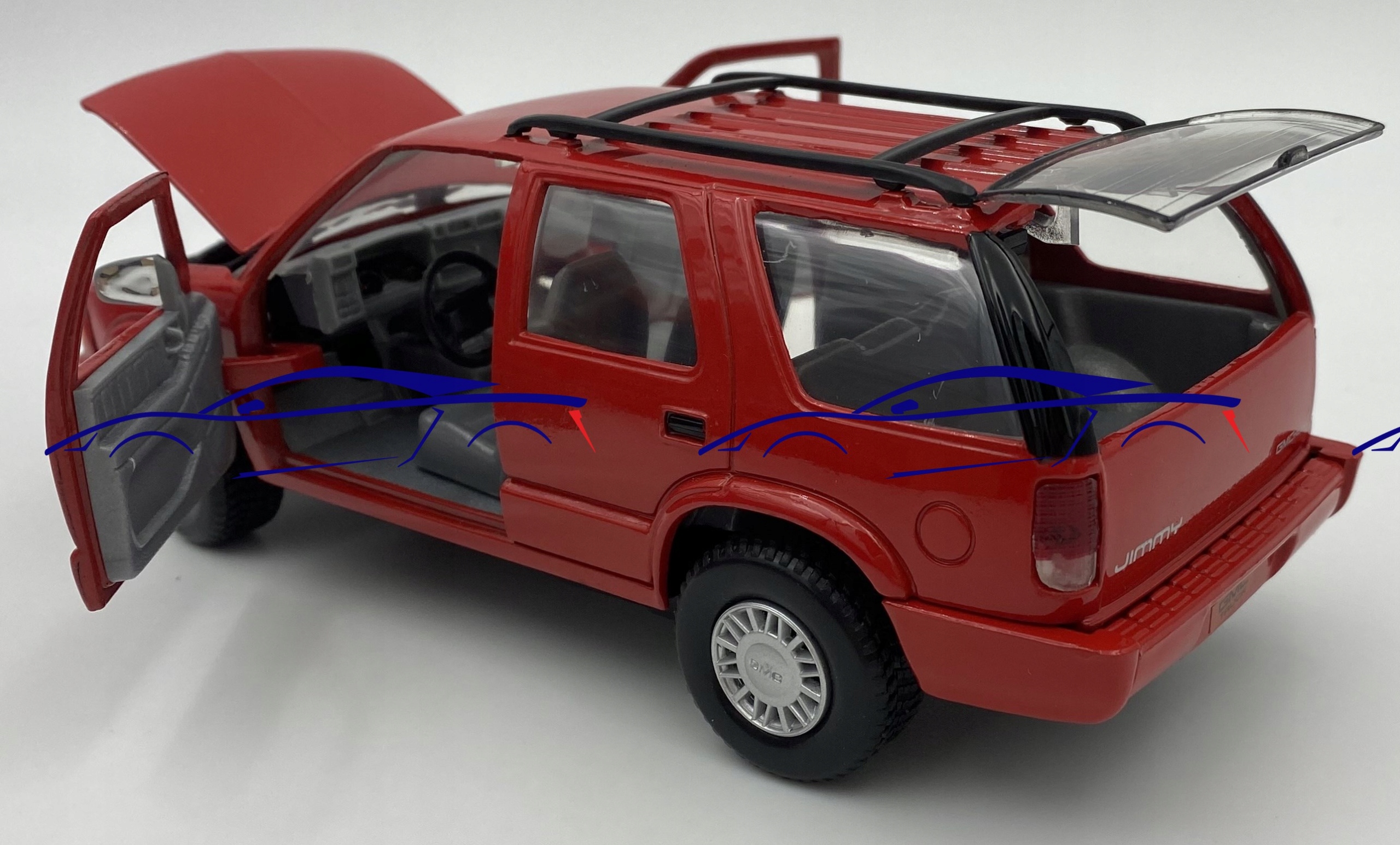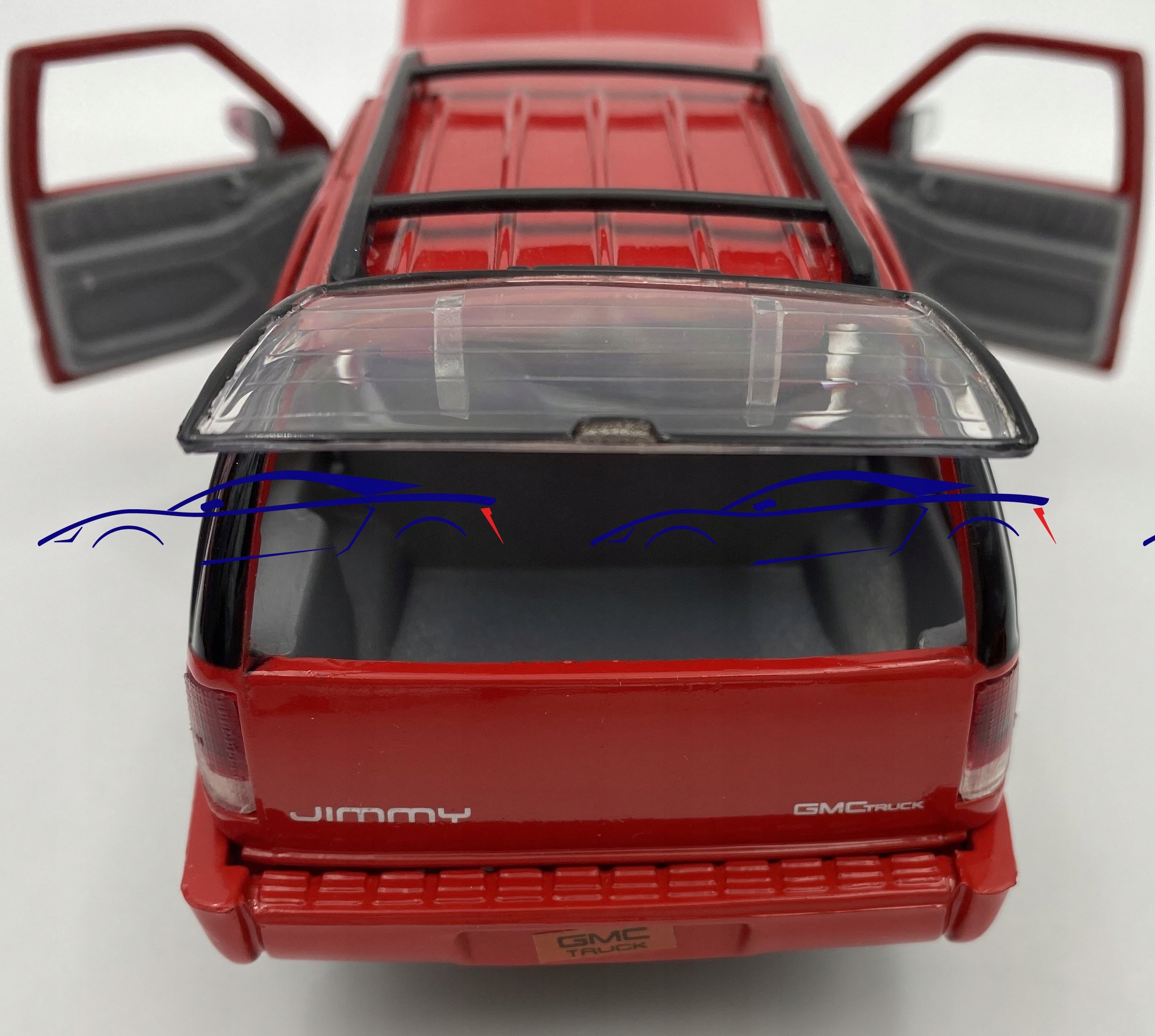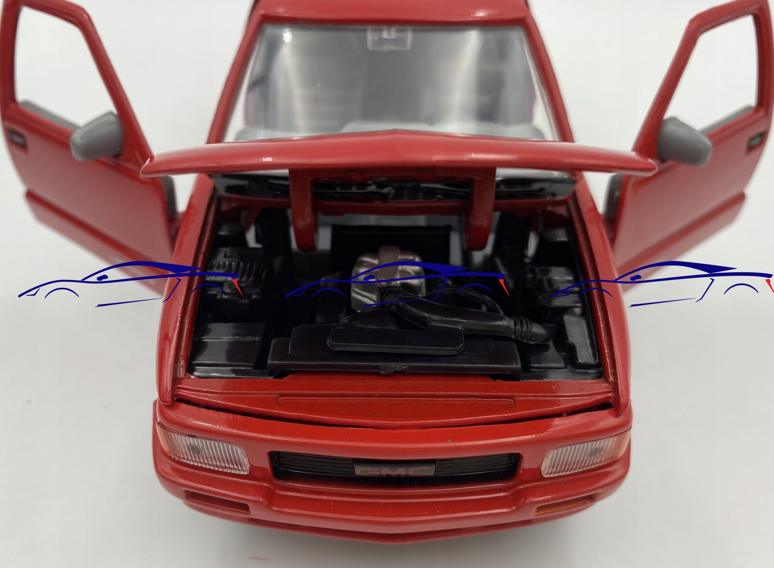 Автомобиль GMC Модель отличается вниманием к деталям. Имеет подвижные элементы - двери, колеса, капот, окошко в крышке багажника.