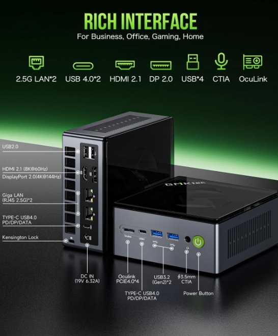 ✅ 【Port oculink】 Порт M7 Oculink обеспечивает более высокие возможности емкости, лучшее количество кадров в секунду и меньшие задержки. Стандарт также работает со скоростью PCIE X4 по сравнению с Thunderbolt X3. Игроки и создатели контента могут использовать более высокую пропускную способность окулинка, что приводит к лучшей производительности и меньшим задержкам в конфигурациях EGPU.