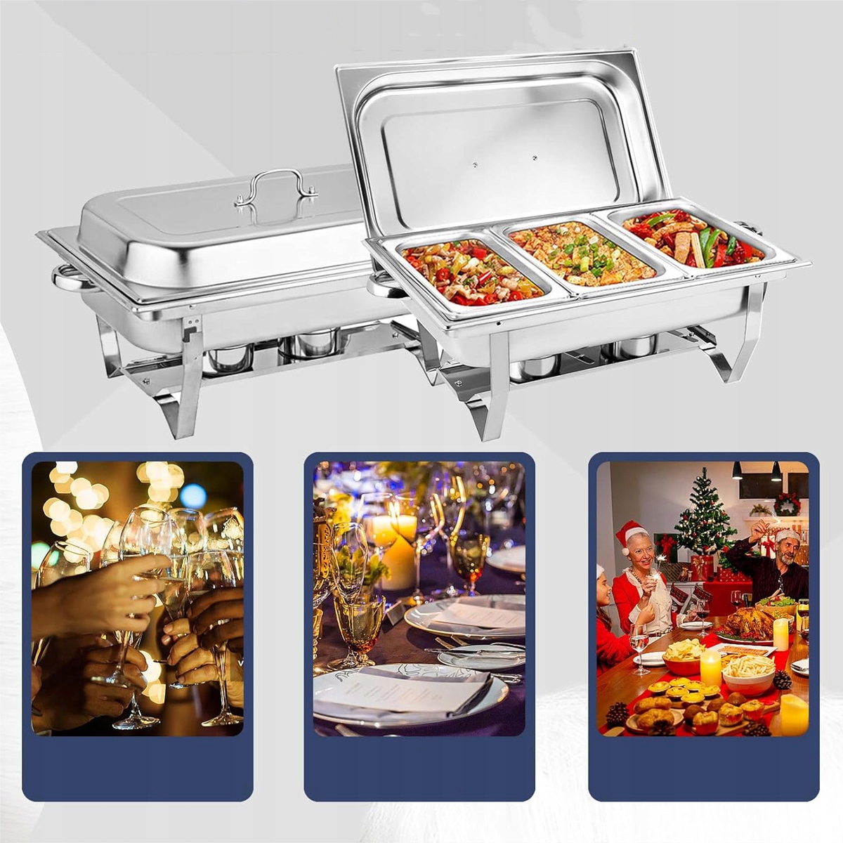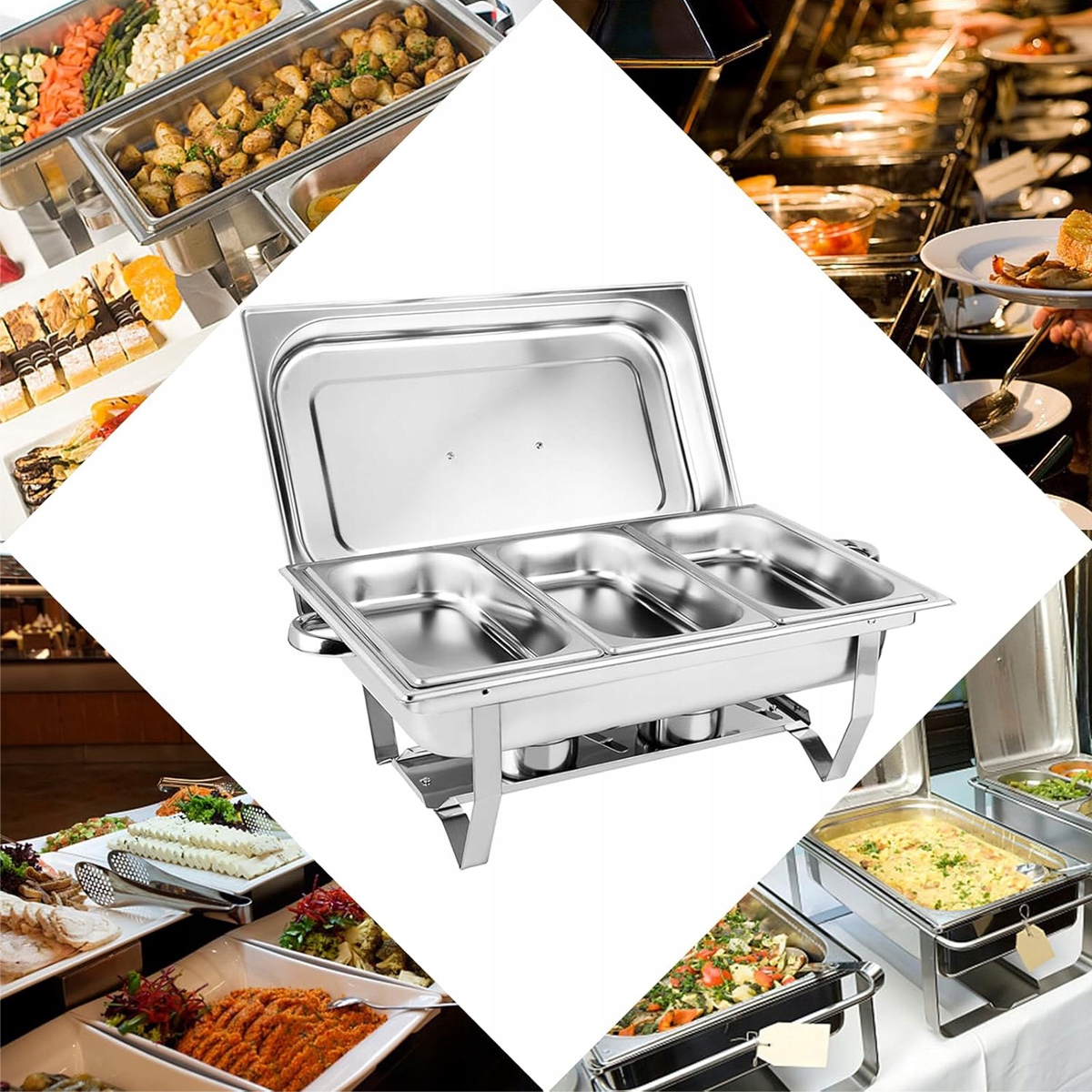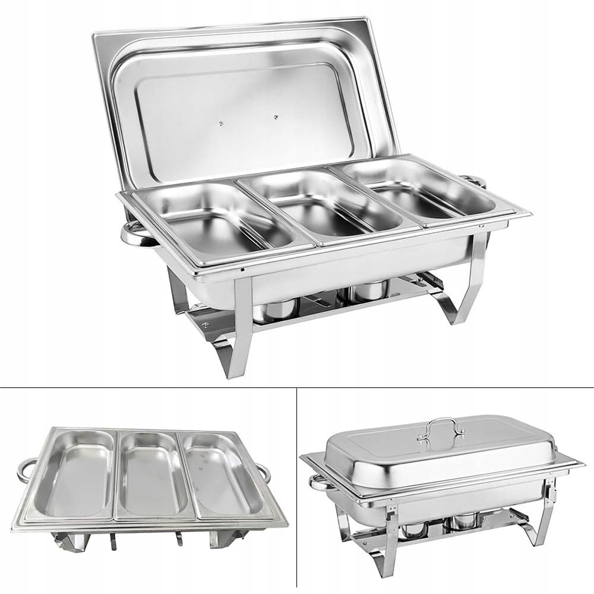Набор подогревателей для жаровни, 9 л, из нержавеющей стали, со складными ножками для кейтеринга, фуршета и вечеринок (серебристый, тройной поднос)