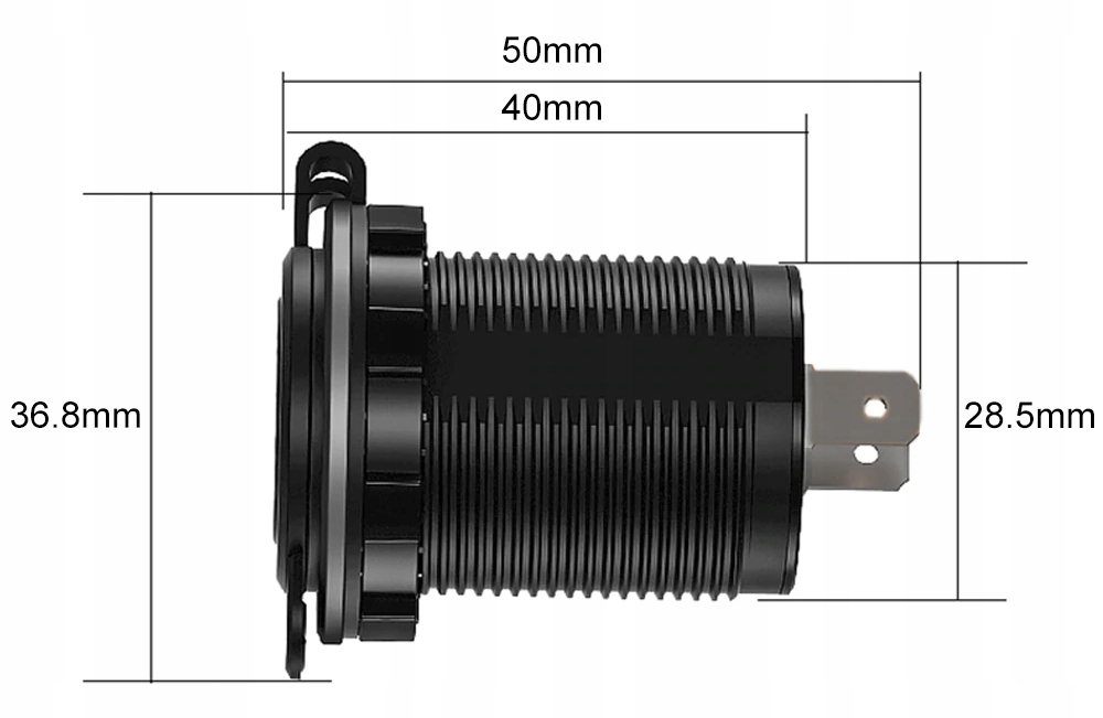 Гнездо прикуривателя предназначено для установки на плоских поверхностях, таких как приборная панель, обивка автомобиля или, в случае двухколесных транспортных средств, например, в корпусе. Адаптер крепится с помощью резьбового кольца – гайки для крепления в корпусе/панели.