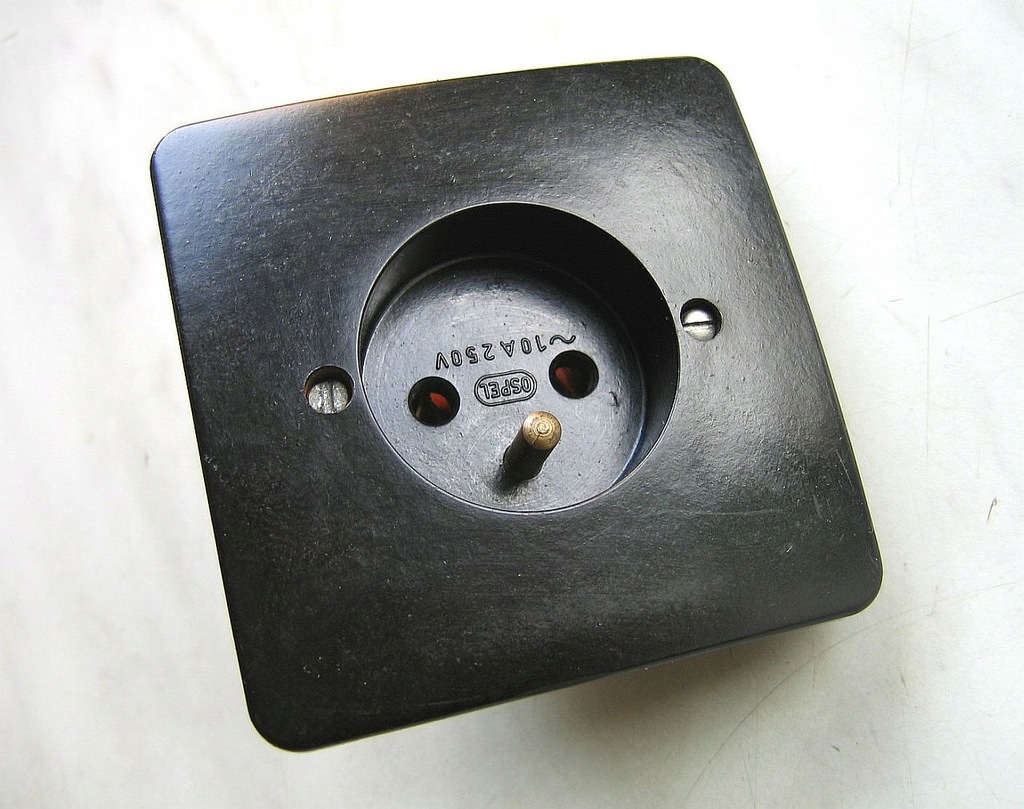 GNIAZDO z BOLCEM : UZIEMIENIE - Czarny BAKELIT pod TYNK ... !!!