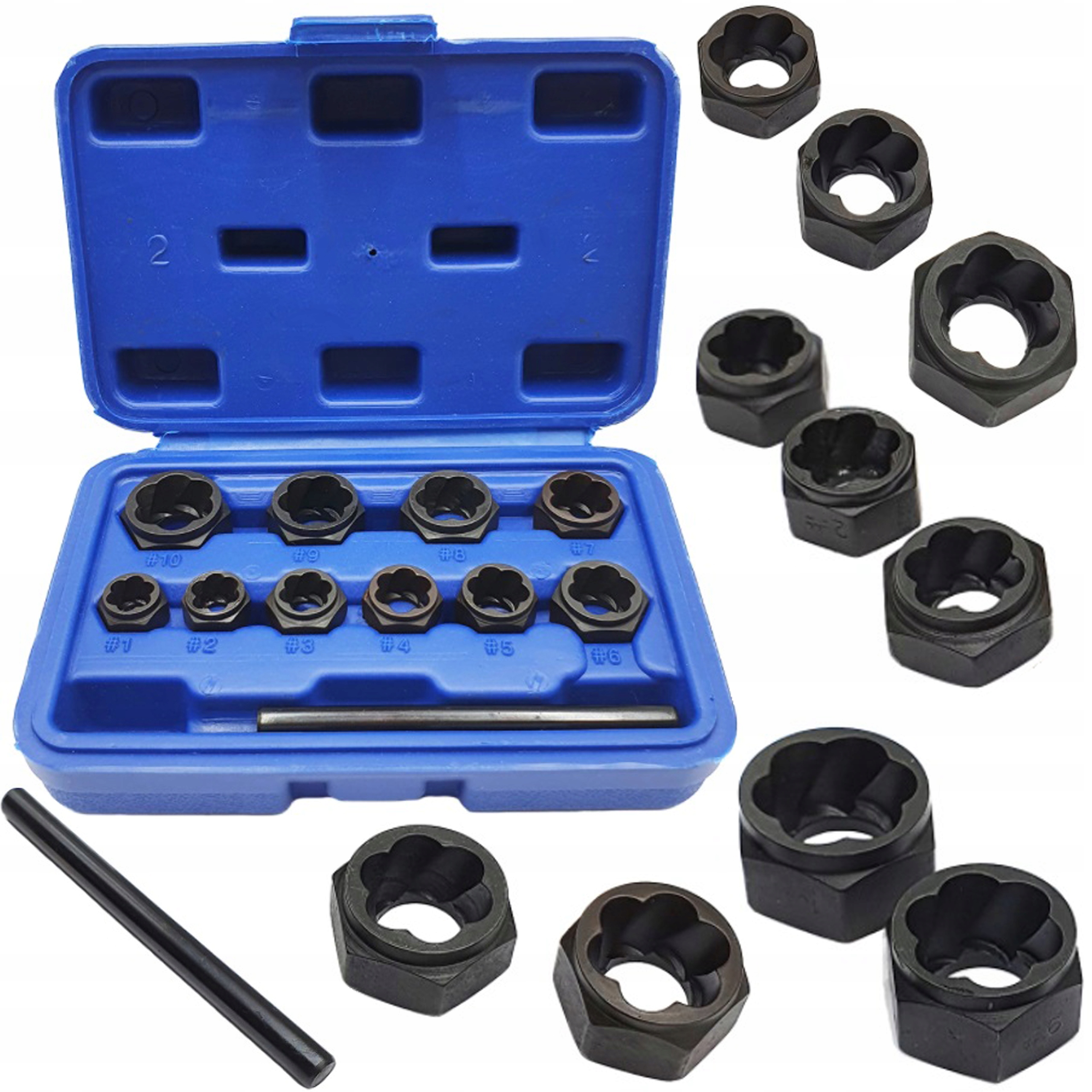 Набор специализированных головок для снятия обработанных винтов, гаек и т. д. Особая форма внутри гнезда позволяет вгрызаться в головку обработанного винта или гайки, чтобы заклинить их.